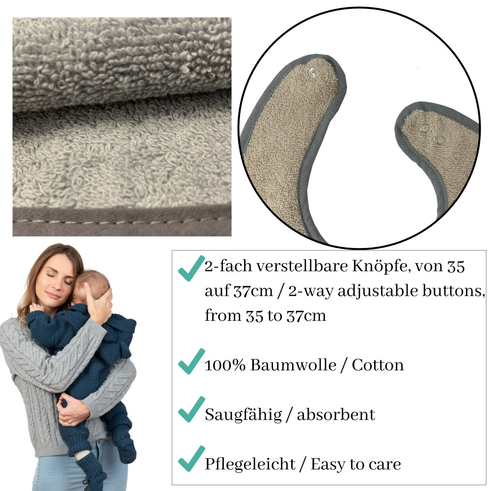 Детският лигавник Jemidi с размери 49 х 30 см в сиво е изработен от висококачествен органичен памук, идеален за нежната кожа на малките. С отлична абсорбция, тези лигавници предпазват дрехите на бебето от мръсотия и течности по време на хранене или игри. Простият и удобен дизайн пасва идеално на всеки ежедневен тоалет, осигурявайки защита и стил.