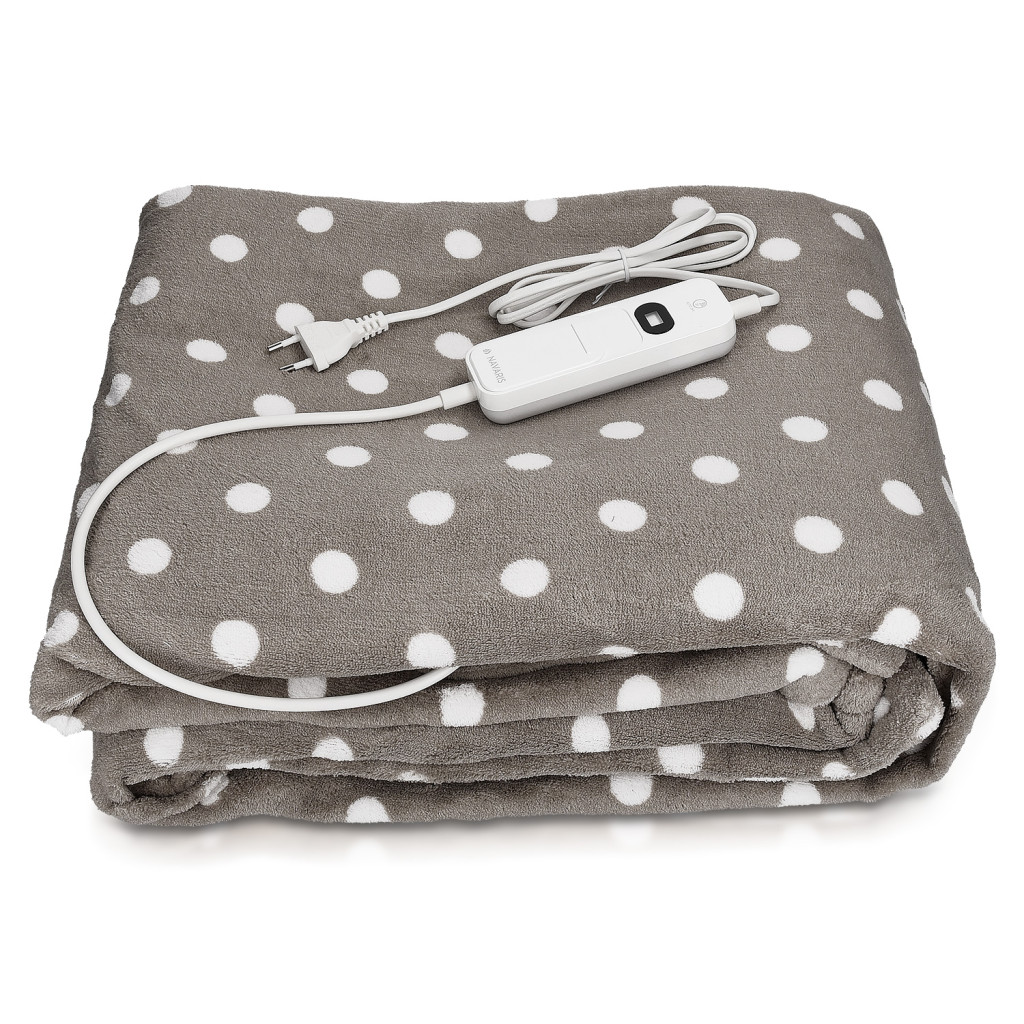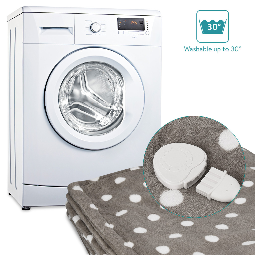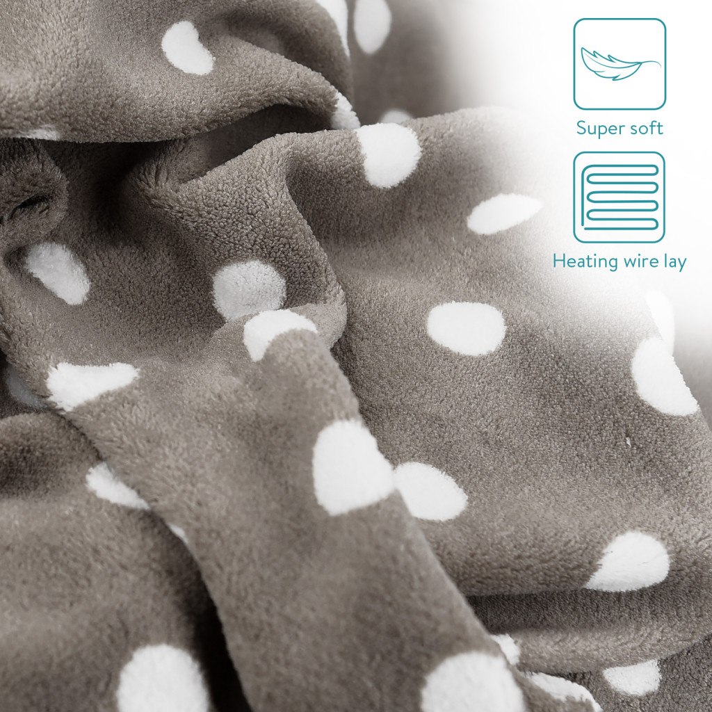 Patura electrica Navaris, 180x130 cm, model puncte, material moale, gri/gri inchis, poliester