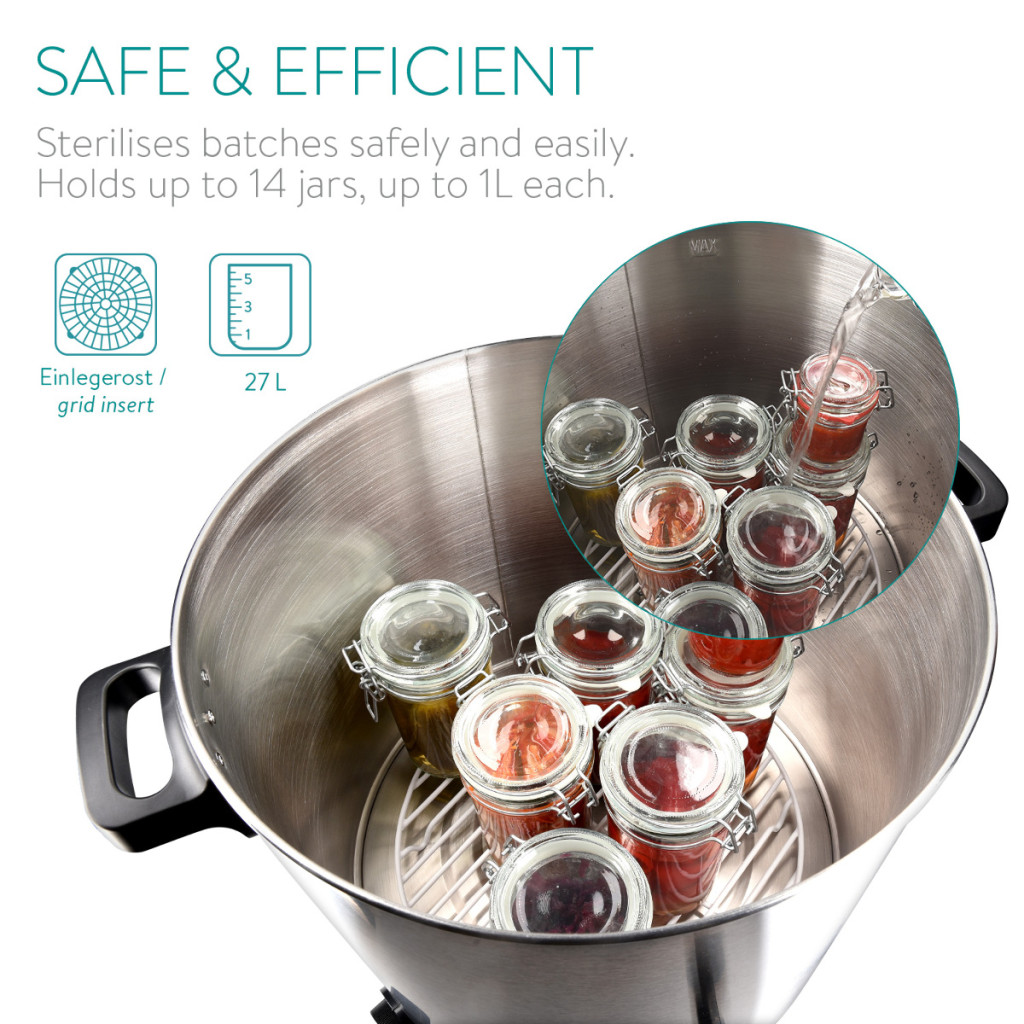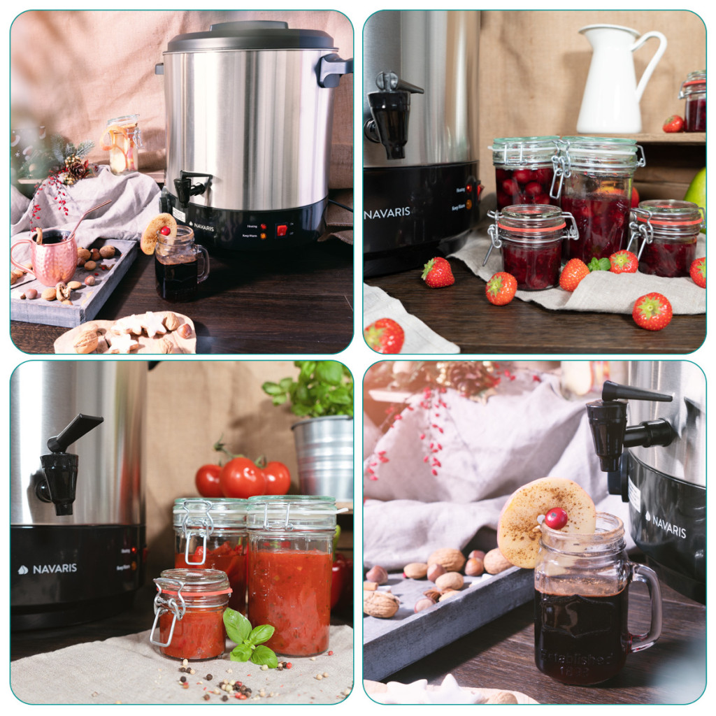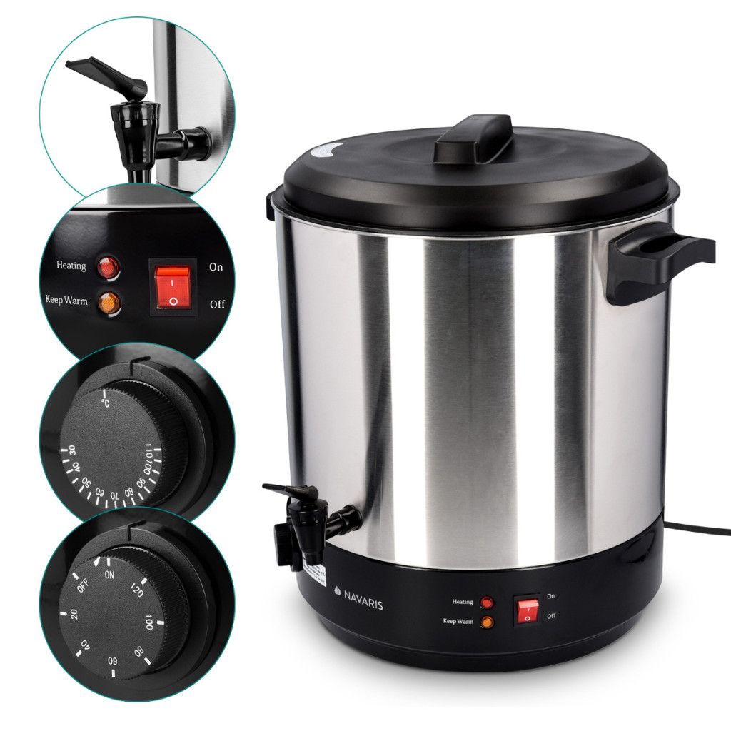 Fierbator electric Navaris, 27 L, pentru vin fiert si conservare, gri, otel inoxidabil/metal