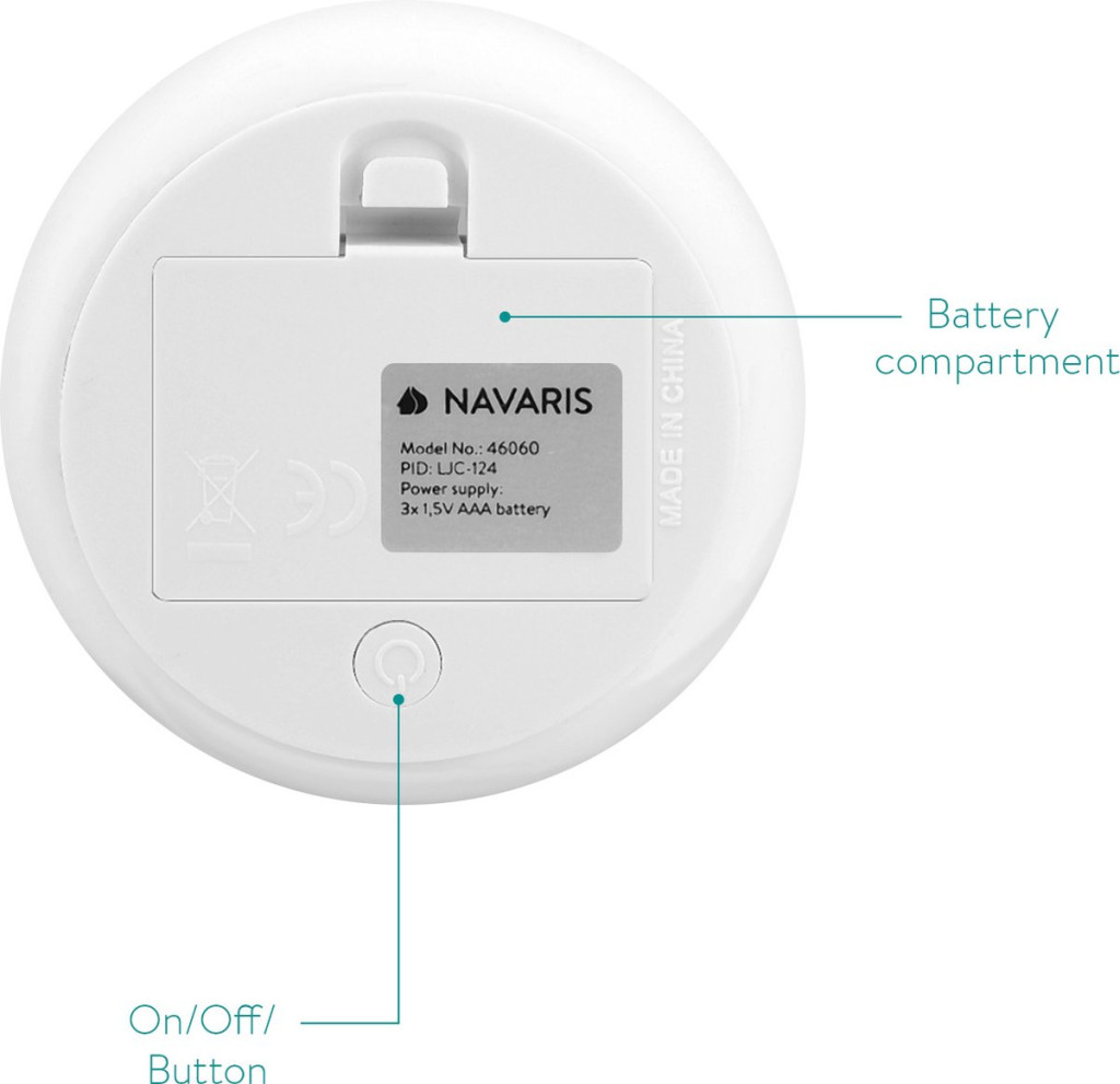 Нощната лампа е безжична и работи с 3 батерии 1,5 V AAA (не са включени). Това означава, че може гъвкаво да се поставя на различни места или да се вземе със себе си.