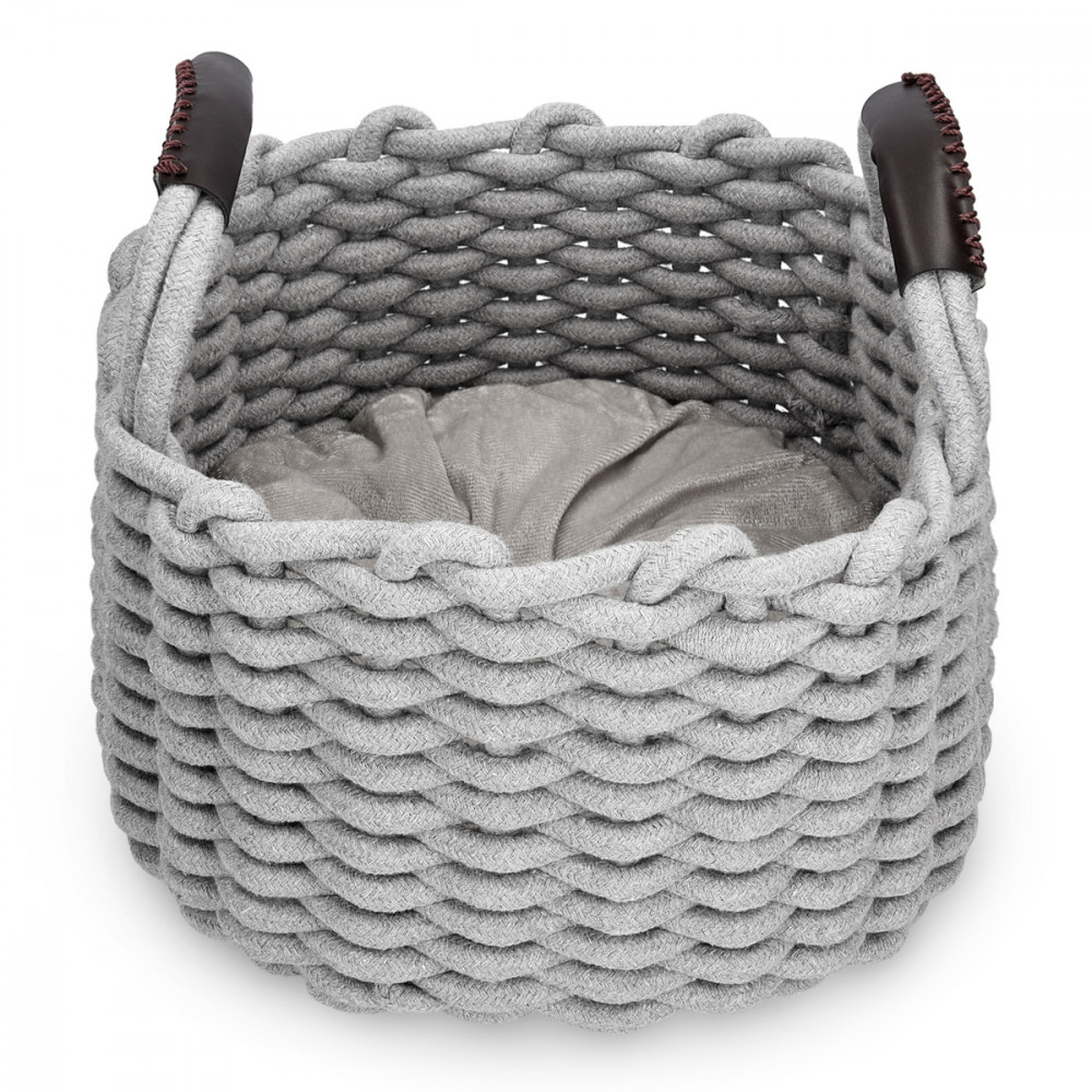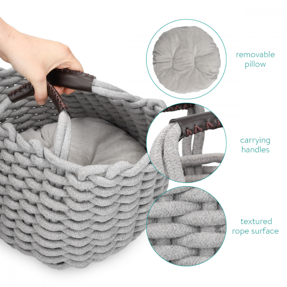 Осигурете на котката си уютно място, където да се свие с леглото за домашни любимци с плетено въже Navaris. С мека заоблена форма и подвижна възглавница, това елегантно спално бельо осигурява прекрасно изживяване при спане и гнездо.