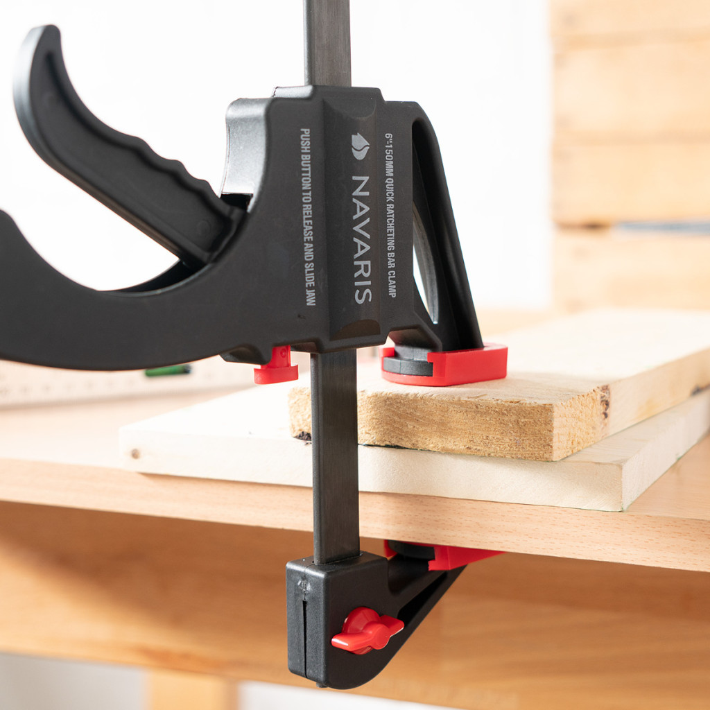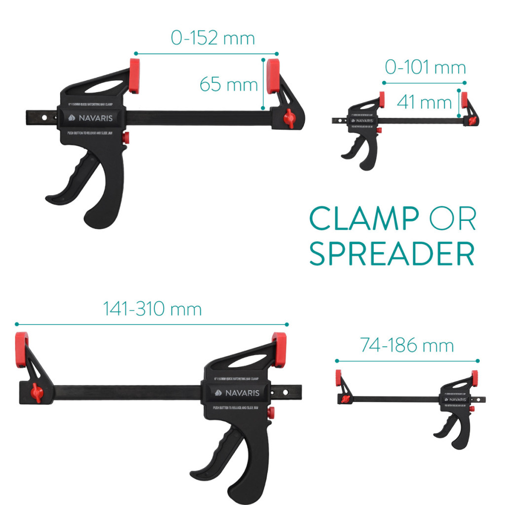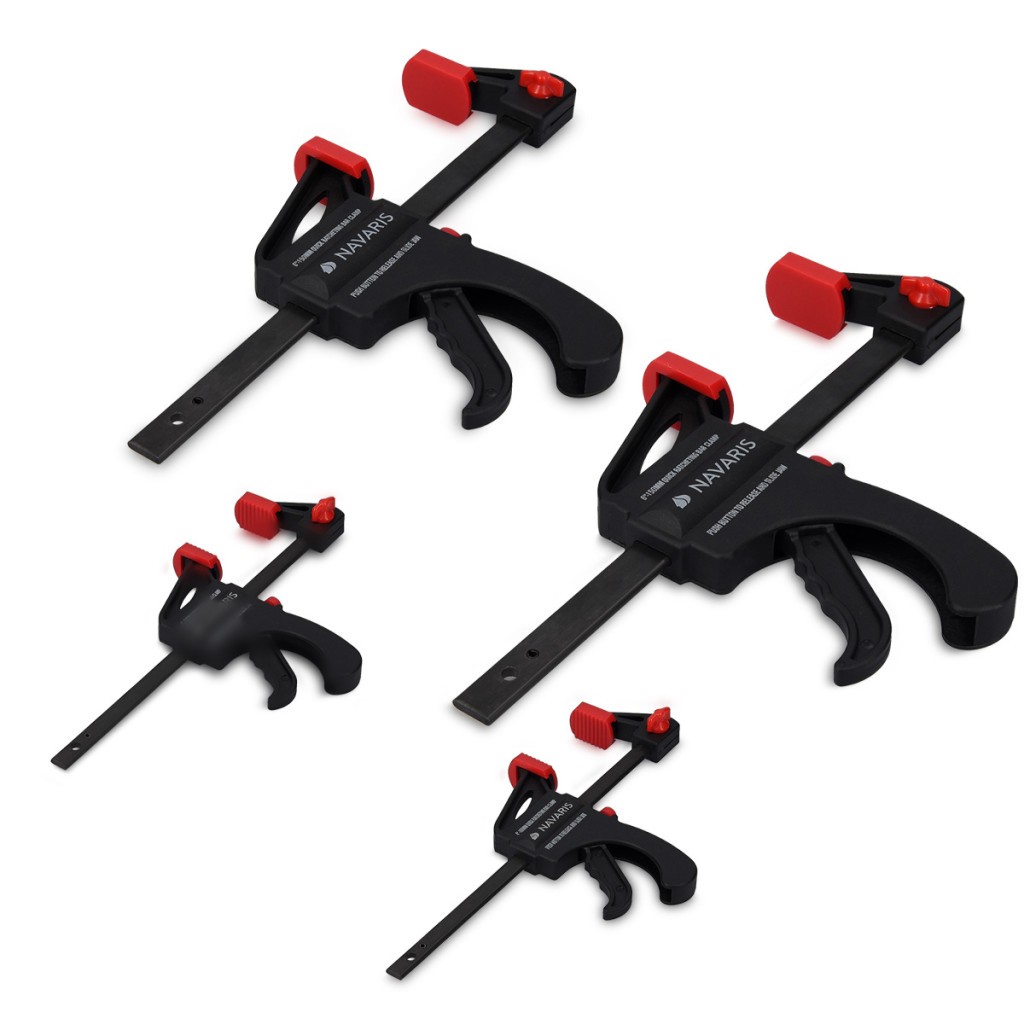 Set 4 cleme rapide Navaris, 15 cm + 10 cm, o mana, pentru lemn, atelier, negru, lemn/nylon/plastic/otel