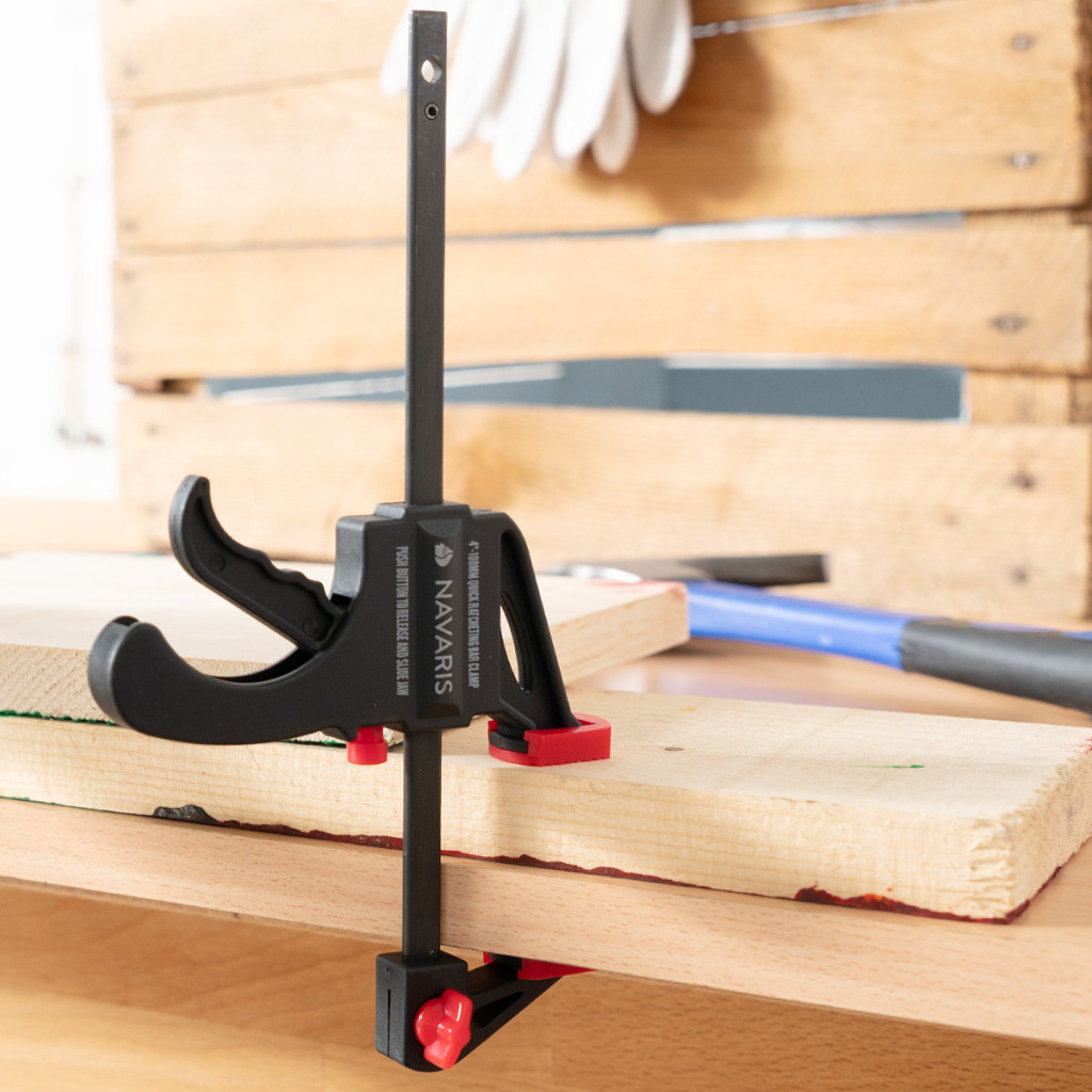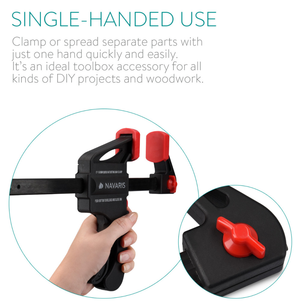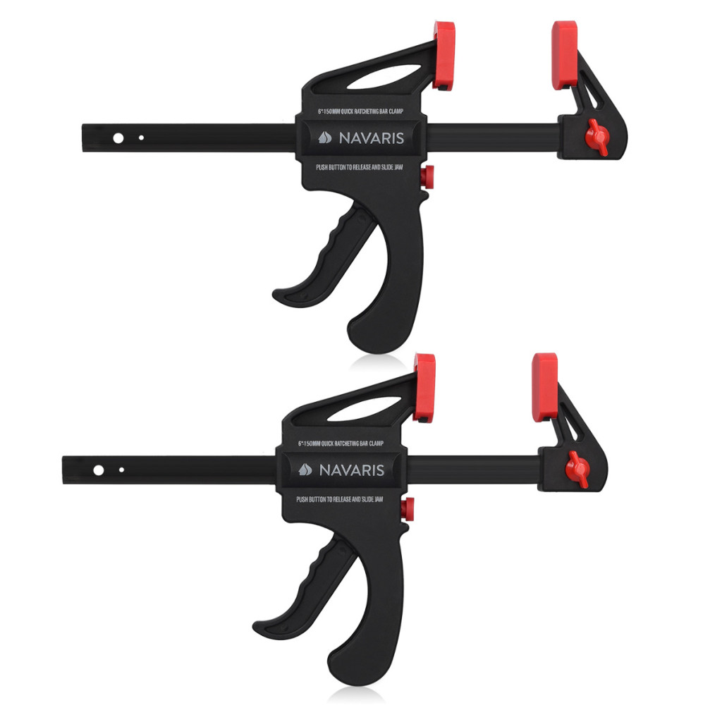 Set 2 cleme rapide Navaris, 15 cm, o mana, pentru lemn si lipire, negru, lemn/nylon/plastic/otel