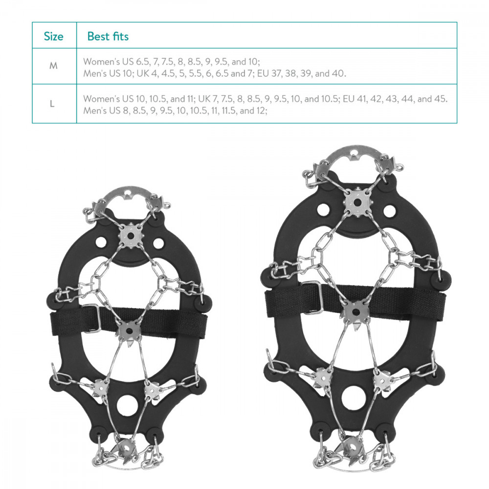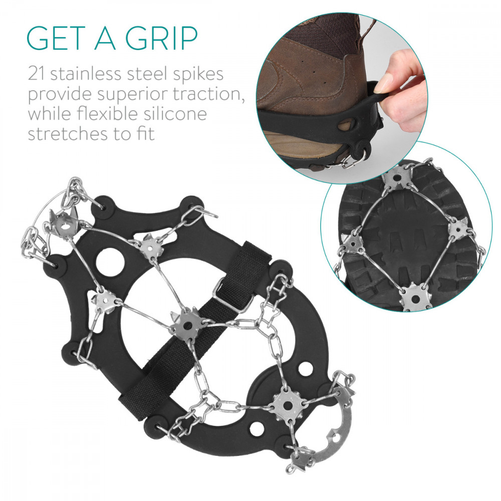 Дръжките на леда са направени от еластичен силикон, така че че може да се изтегли върху обувките за удобно и сигурно прилягане.