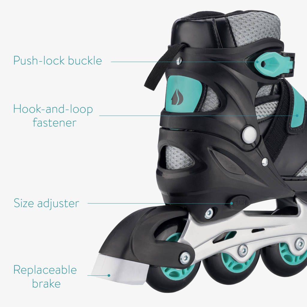 Role reglabile Navaris, marimea M EU 35-38, negru, polipropilena/poliester/piele ecologica