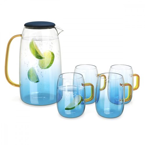 Докато традиционната стъклена кана може да се счупи при ниски или високи температури, този комплект боросиликатни гарафи и чаши е устойчив на удар и е идеално оборудван да се справи с температури между -20 °C и 130 °C .
