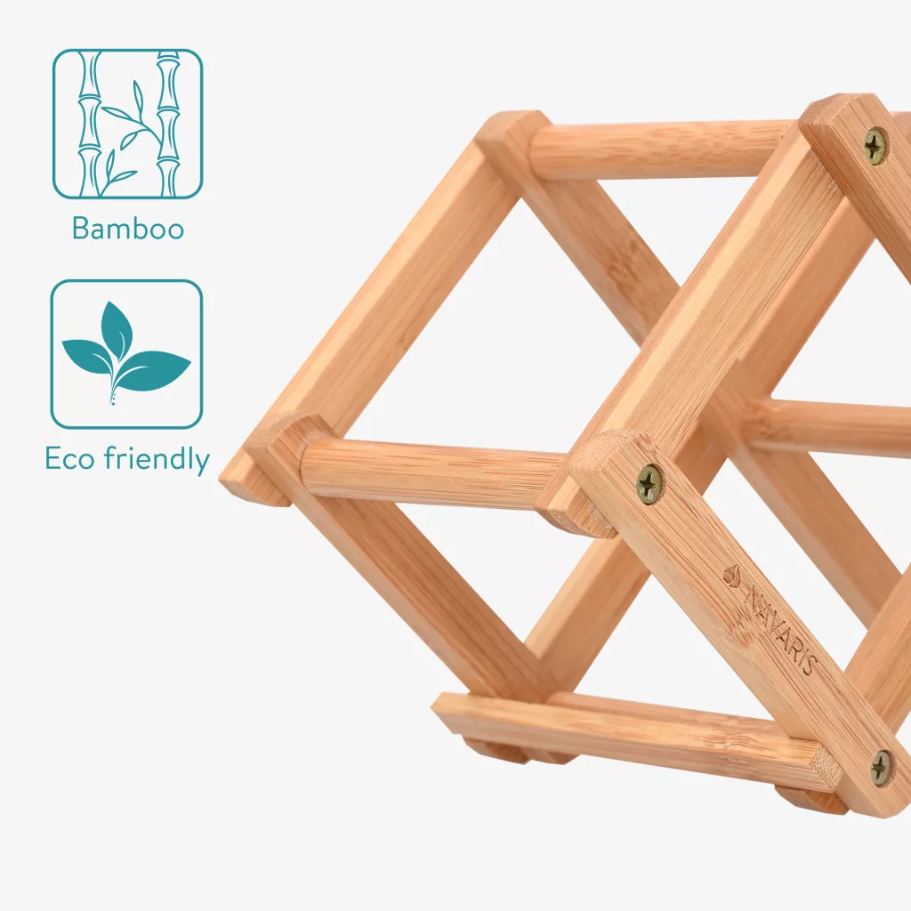 Suport bauturi din bambus Navaris, 5 sloturi, pliabil, 45x12x15.2 cm, negru, bambus