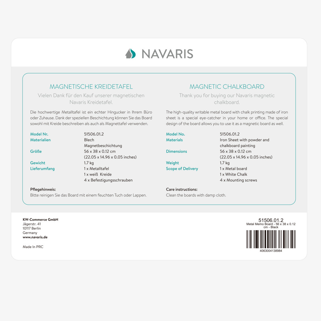 Tabla magnetica metalica Navaris, 56x38 cm, tabla de scris cu creta, marker tip creta, negru, otel
