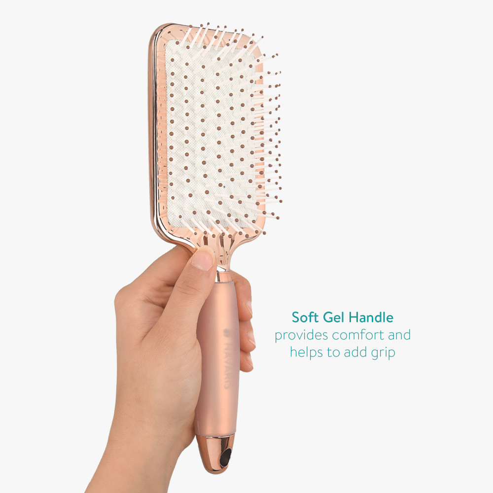 Вместо твърда пластмасова дръжка, всяка четка в този комплект от 3 бр. четки за коса от Navaris, тя има мека гел дръжка, която не само осигурява комфорт, но също така помага за добавяне на сцепление. Така че ще сте сигурни, че имате здрав захват на четката, когато се справяте с твърди възли, пригответе се след душ или отделете време, преди да излезете, за да оформите косата си, този комплект от 3 четки за коса е отличен за оформяне на мокра или суха коса. коса.