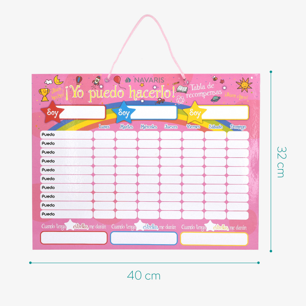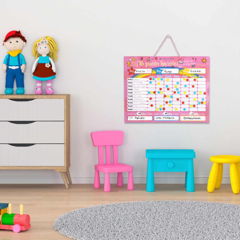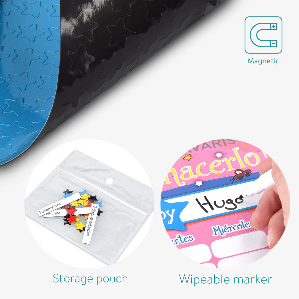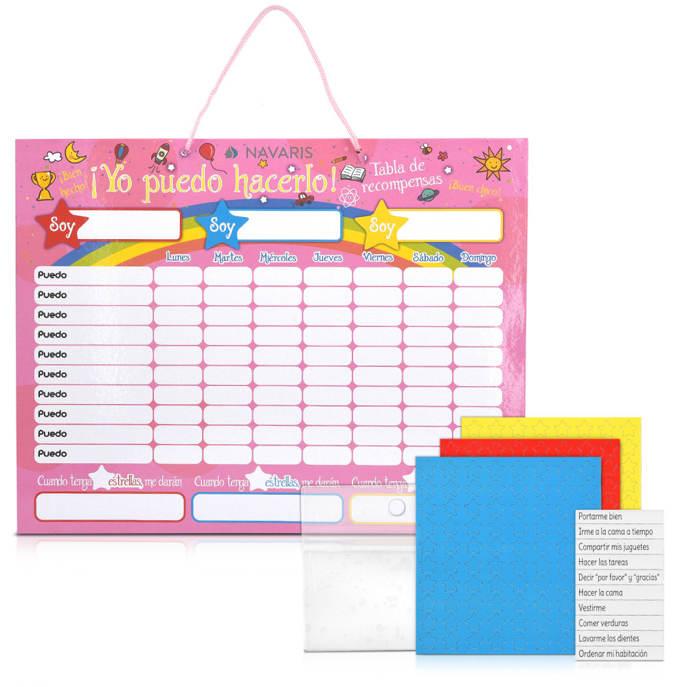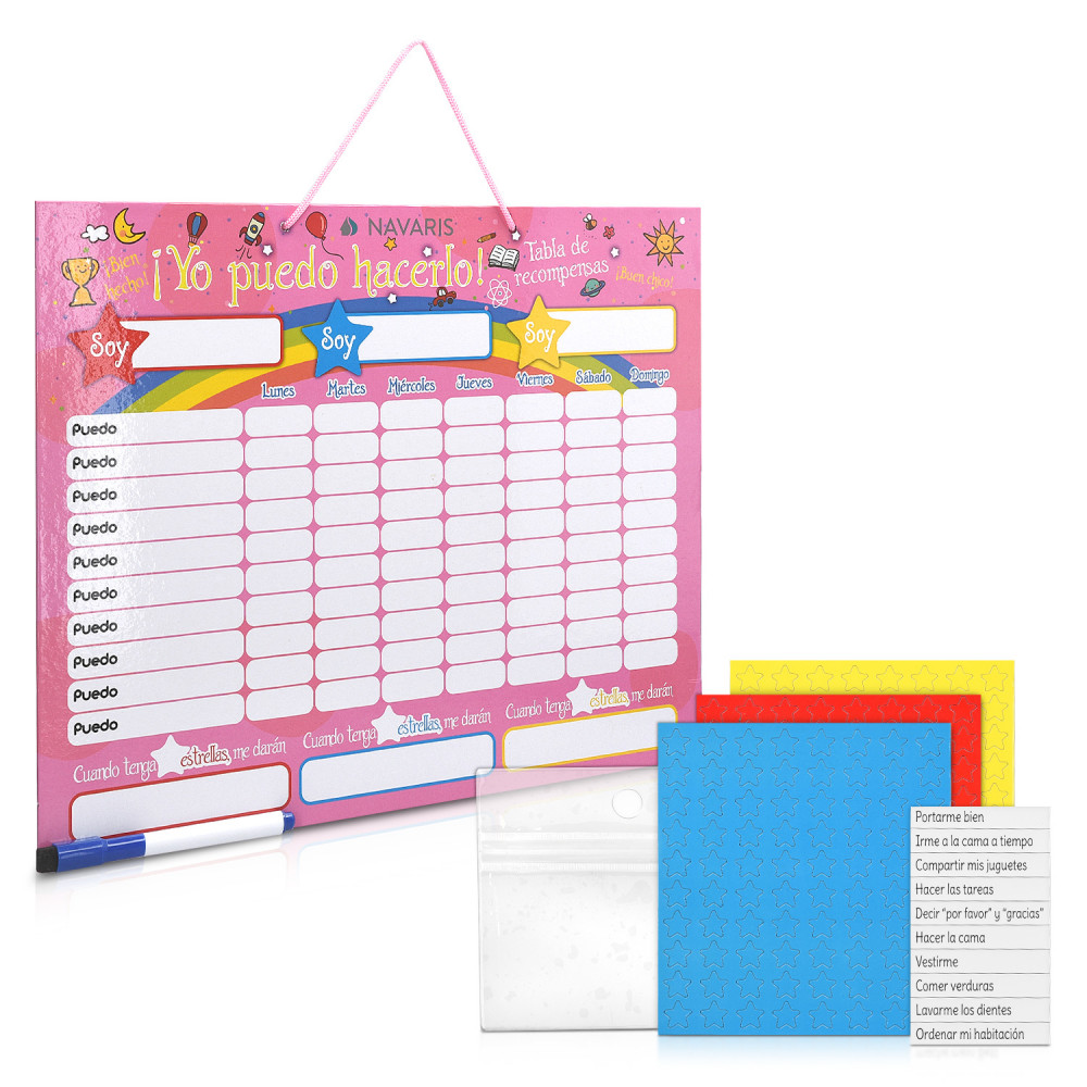 Мотивирайте и вдъхновете доброто поведение и напредък на вашето дете с магнитната звездна диаграма за награди от Navaris. Таблото за награди на испански се предлага с общо 250 МАГНИТА и магнитен маркер.