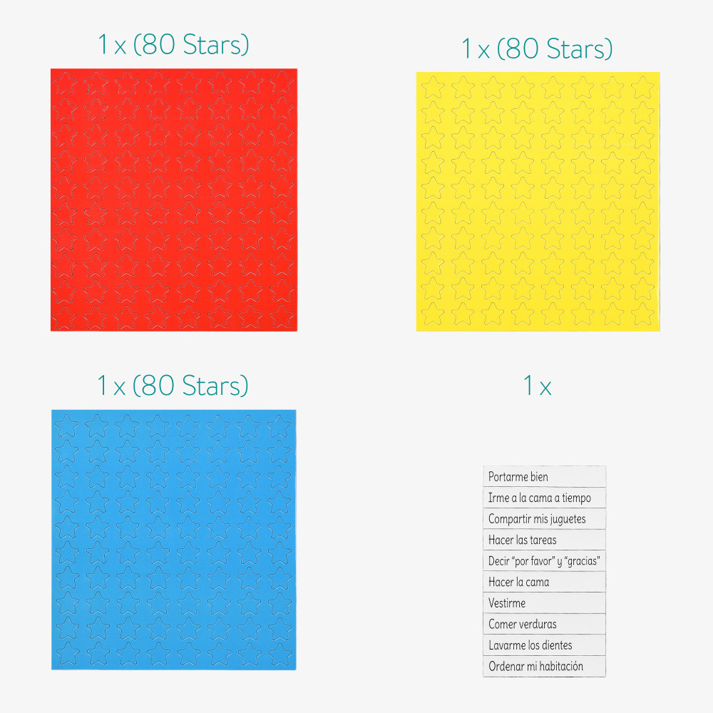 С 80 магнитни звезди във всяка от 3 цвята, плюс 10 магнита със задачи върху тях, вашето дете ще остане мотивирано да постига целите си през цялата седмица.