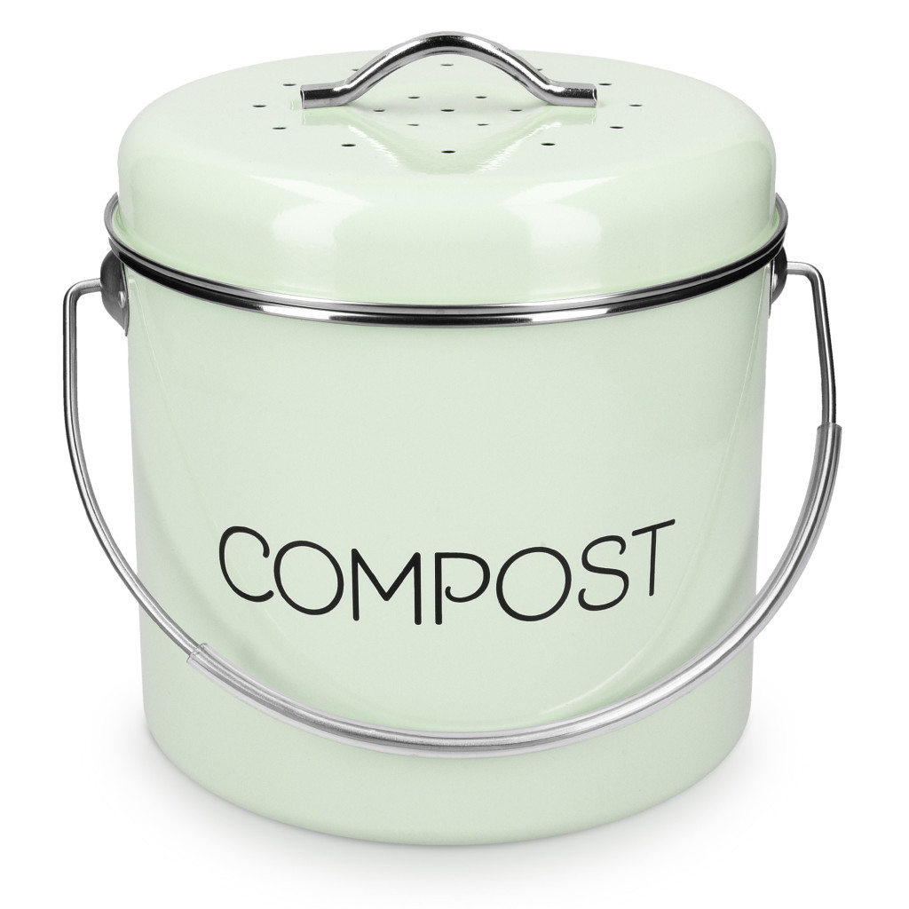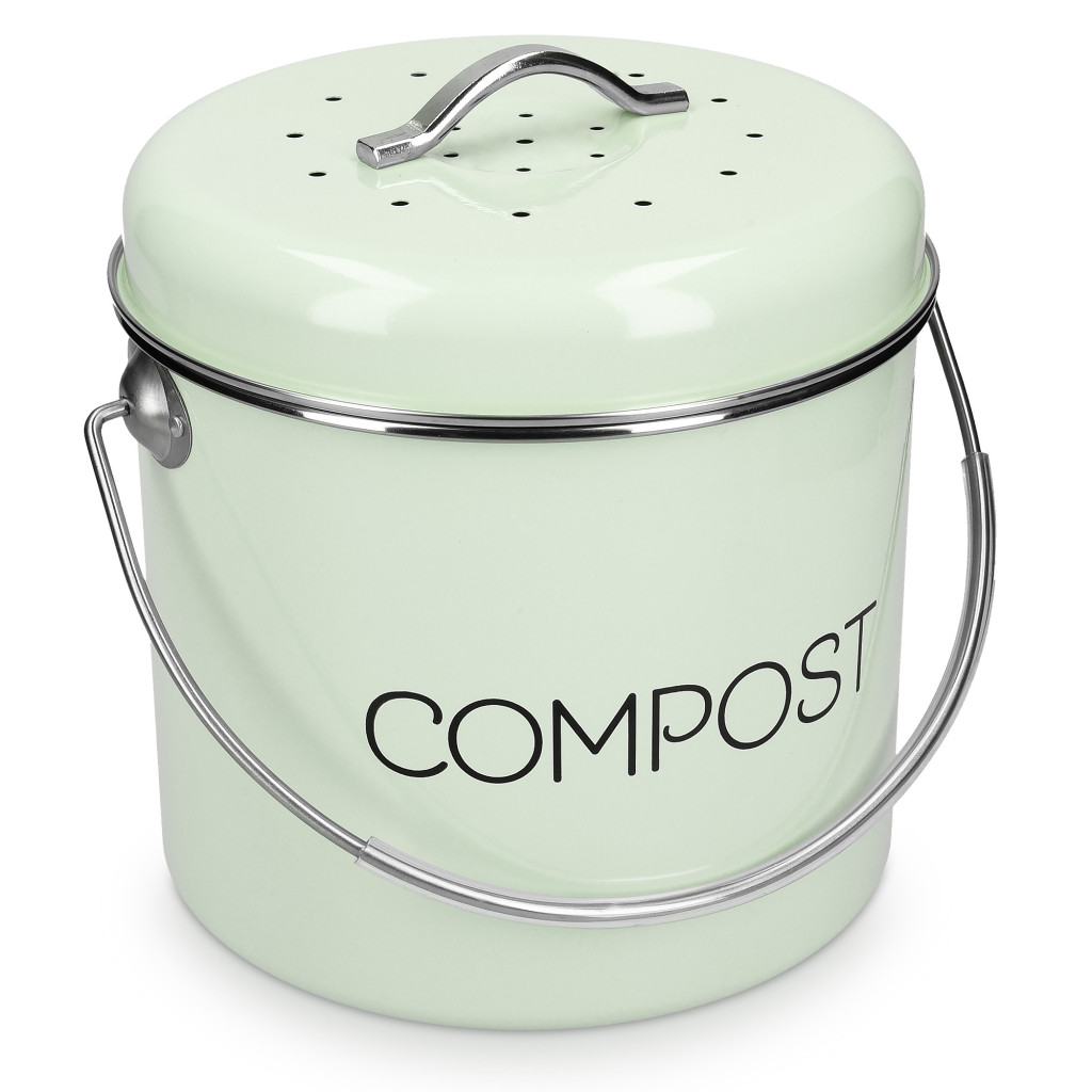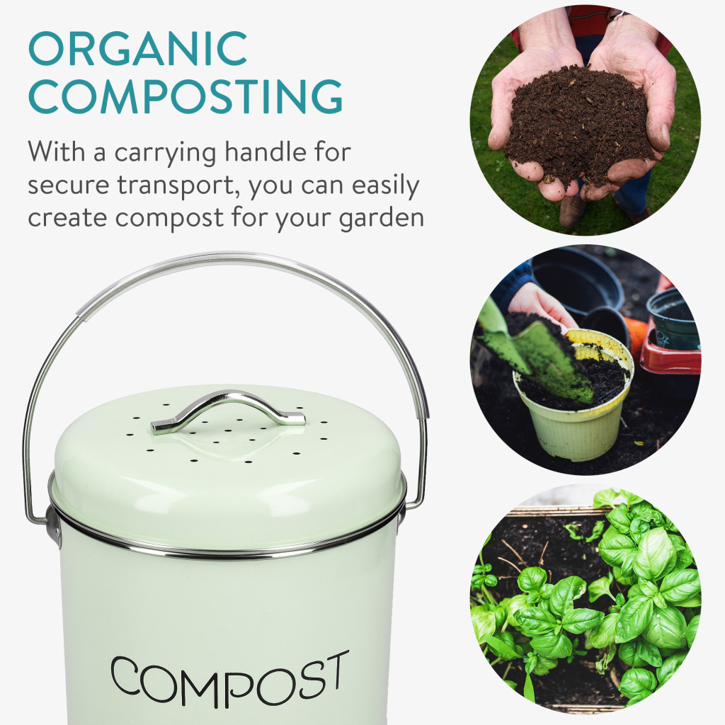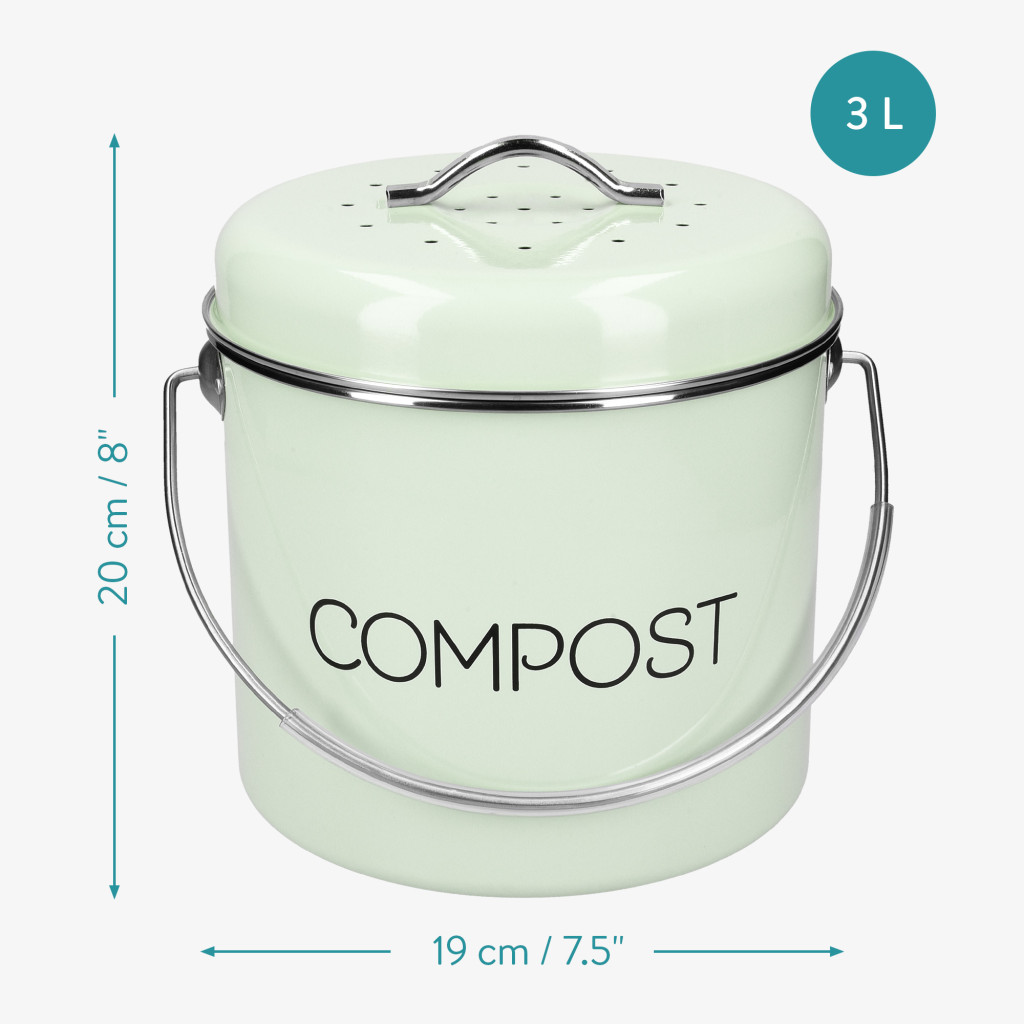 Cos de compost Navaris, 3 L, cu maner si 3 filtre carbon, pentru bucatarie, verde menta, verde, metal