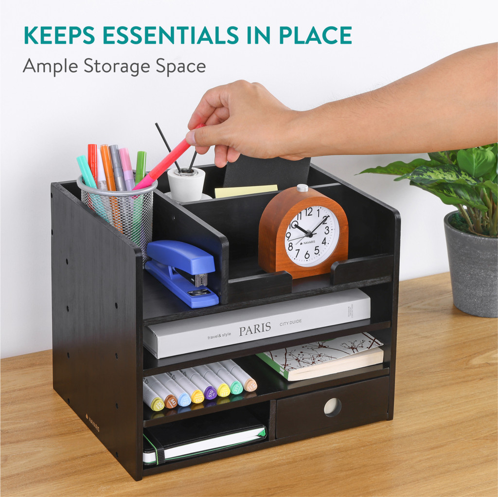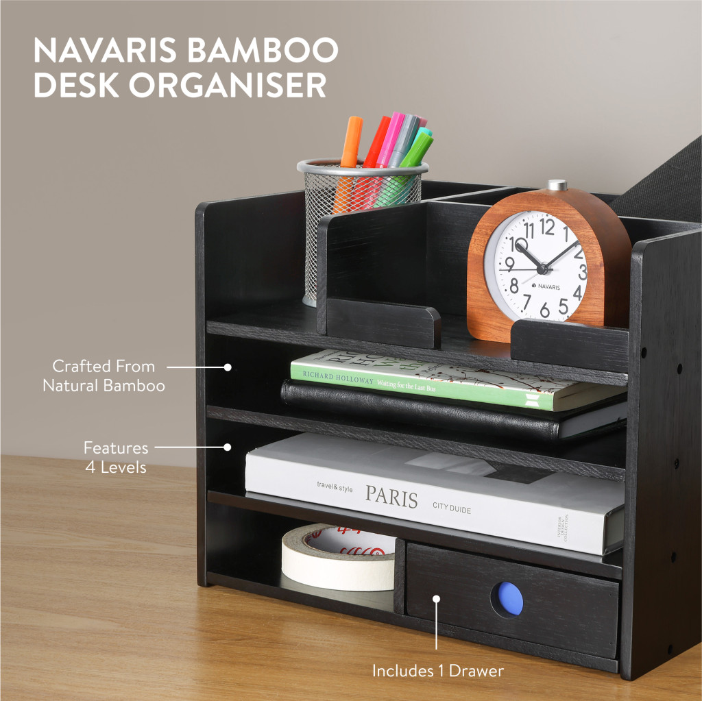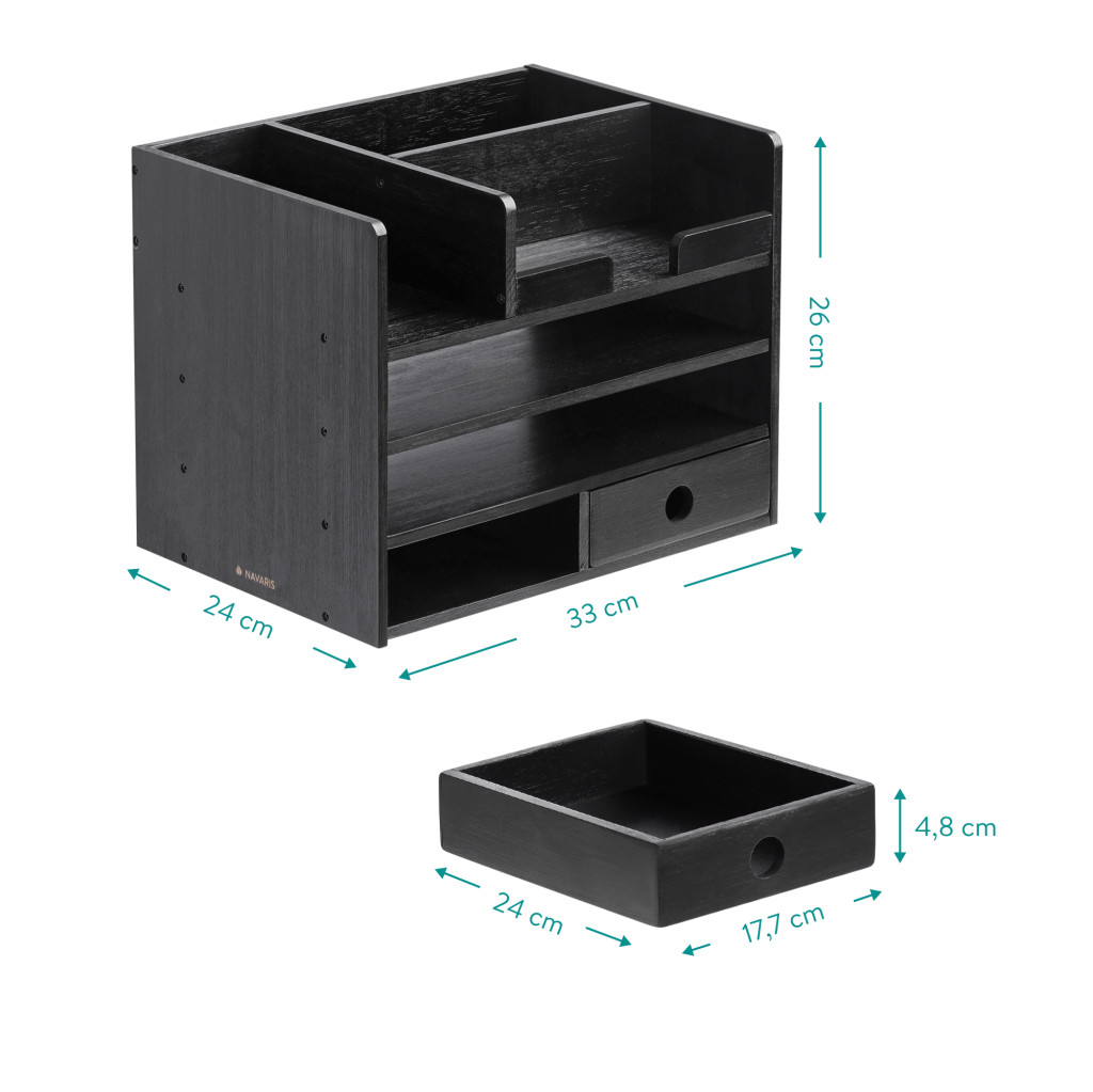 Organizator birou cu sertare Navaris, 33x24x26 cm, auto-asamblare, negru, bambus