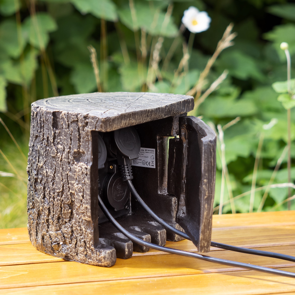 Priza exterioara Navaris Stump, capac, IP44, camuflaj gradina, maro, polipropilena