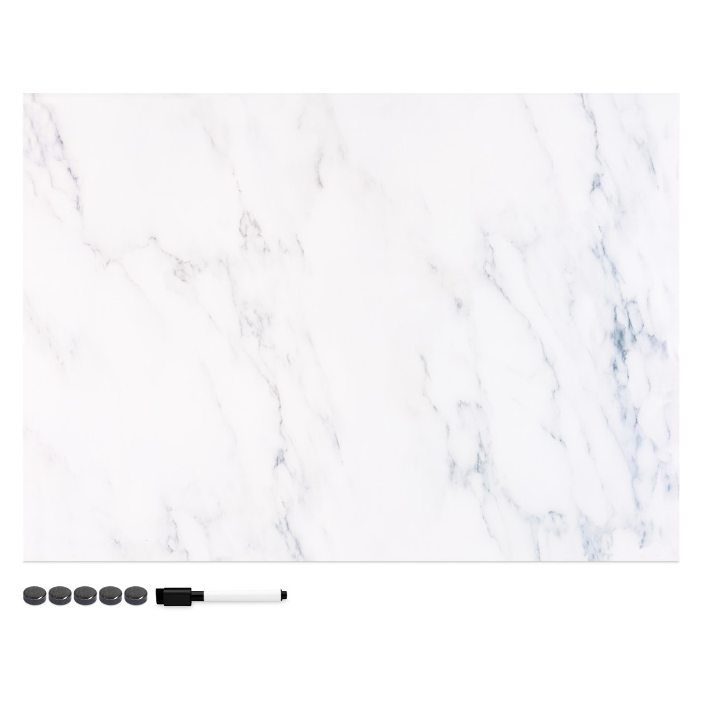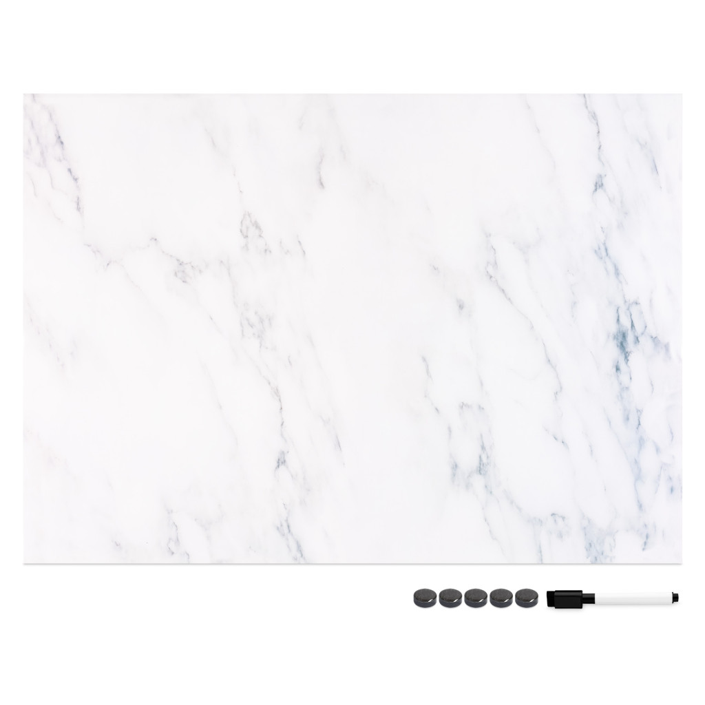 Tabla magnetica Navaris, 70x50 cm, design marmura alba, pentru note, marker si magneti, alb, MDF