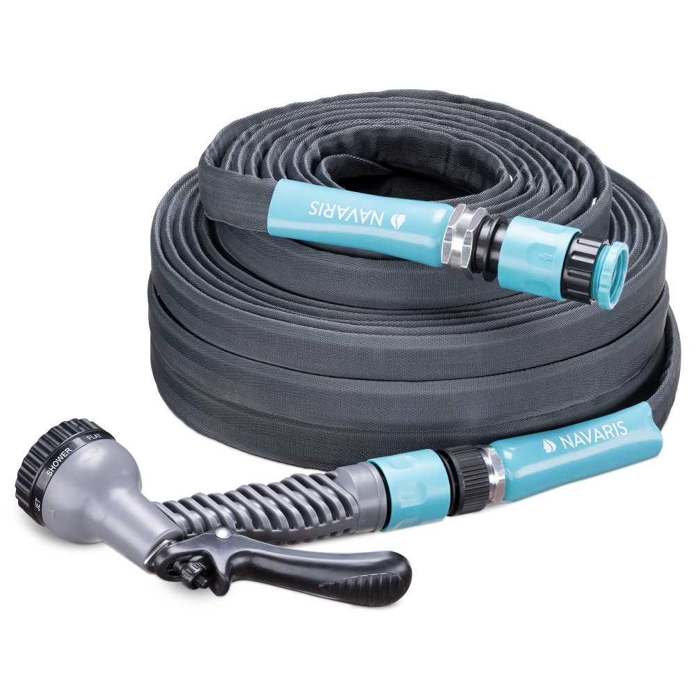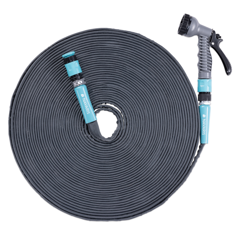 Уверете се, че сте готови за лятото с градински маркуч от Navaris. Изработен от гъвкава гума и PVC, нашият универсален маркуч е идеален за поливане на градината. Включва пистолет за пръскане.
