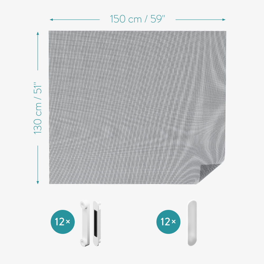 Магнитните щипки, включени в комплекта, ви позволяват да фиксирате тази мрежа върху рамката на вашия прозорец, като същевременно ви позволяват да я премахнете, когато не е необходима.