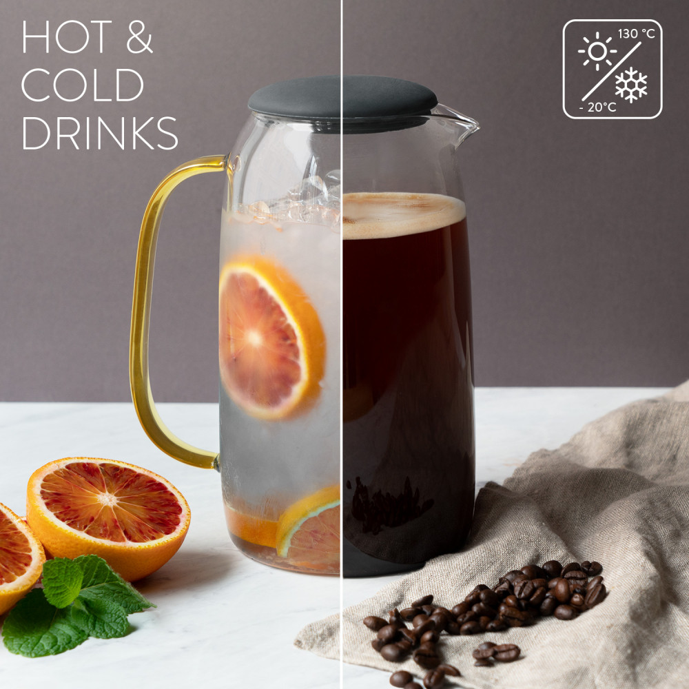 Докато традиционната стъклена гарафа може да се счупи при ниски или високи температури, тази боросиликатна гарафа и комплект стъкло са удароустойчиви и идеално оборудвани да издържат на температури между -20 °C до 130 °C.