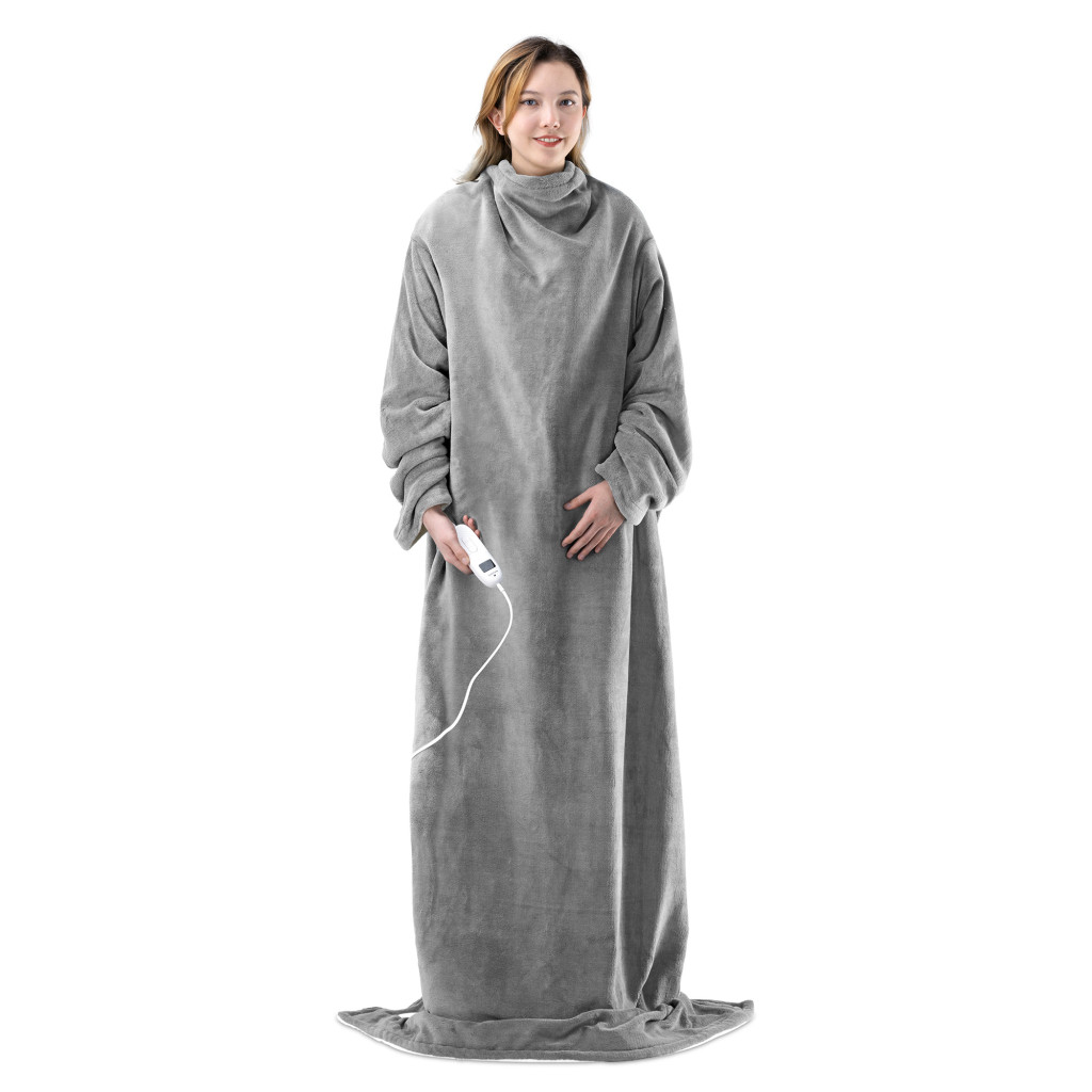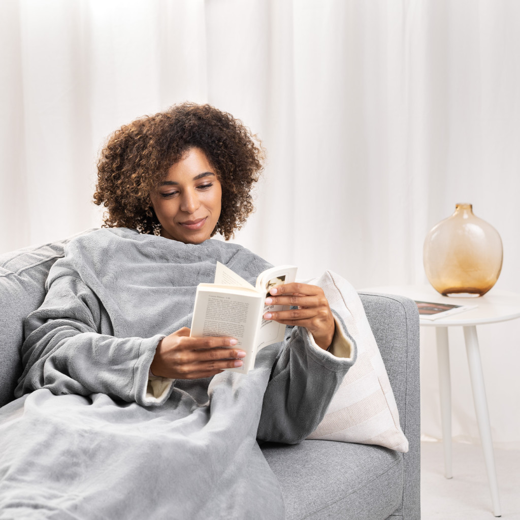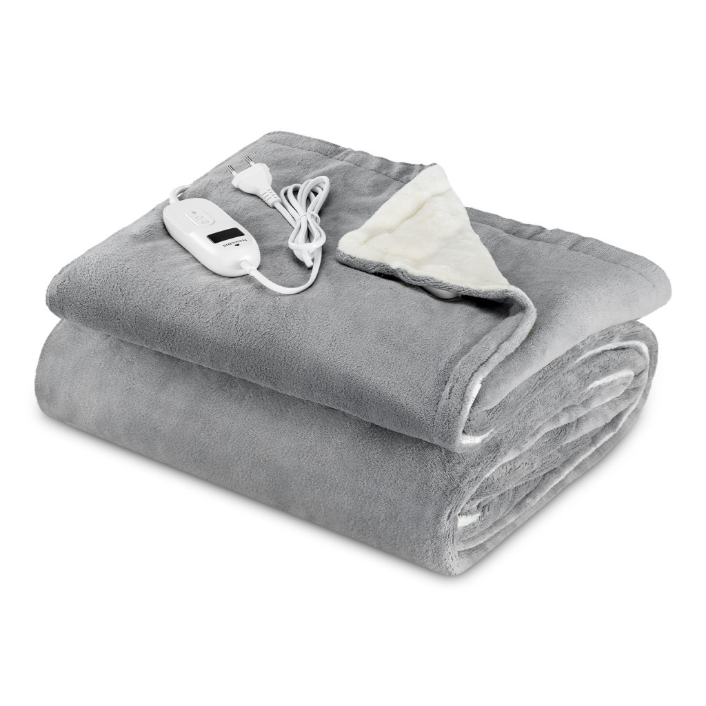 Patura electrica Navaris Snuggy, 195x125 cm, pentru canapea si dormitor, gri/crem, poliester