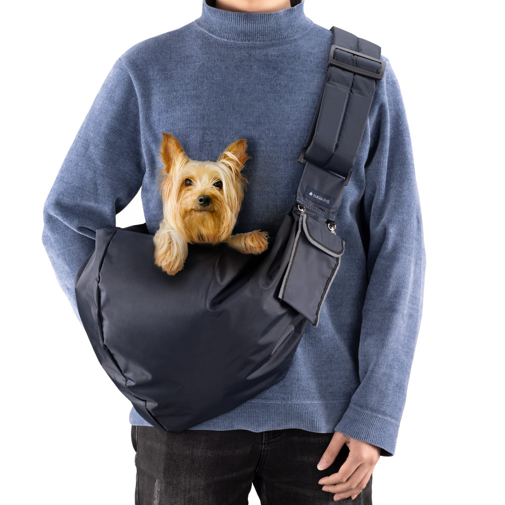 Дръжте телефона или ключовете си под ръка в джоба или го използвайте за съхранение на лакомства за кучета, торбички за изпражнения и други удобни предмети под ръка. Носенето на вашия домашен любимец в слинг и аксесоари в джоба ви оставя ръцете ви свободни, когато се разхождате.