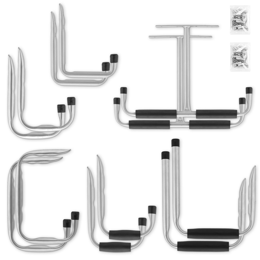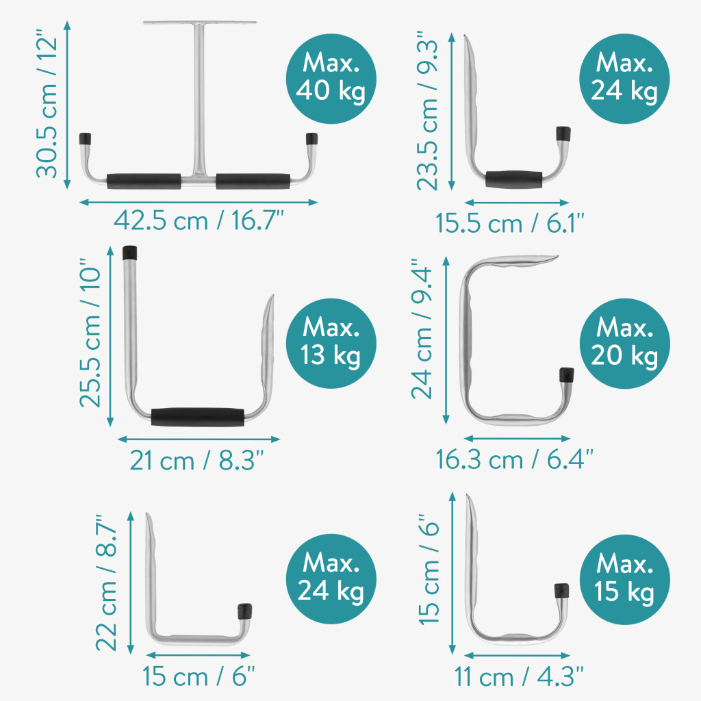 Set 12 carlige depozitare Navaris, tavan/perete, garaj, kit suruburi, negru, otel