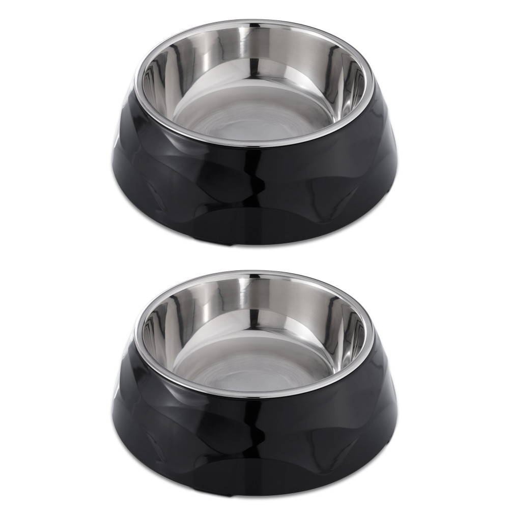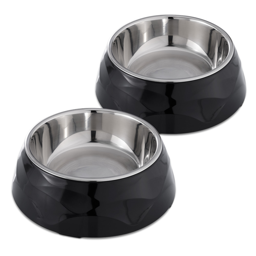 Само най-доброто за вашия домашен любимец. Двете купи от неръждаема стомана и меламин са идеални за сервиране на вода, мокра и суха храна или лакомства за вашата котка или куче.