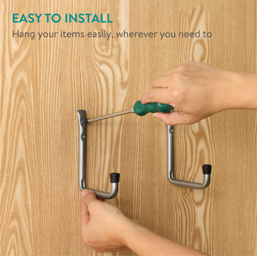 Set 8 carlige depozitare Navaris, tavan/perete, 64.95x15x11.5 cm, garaj, negru, otel