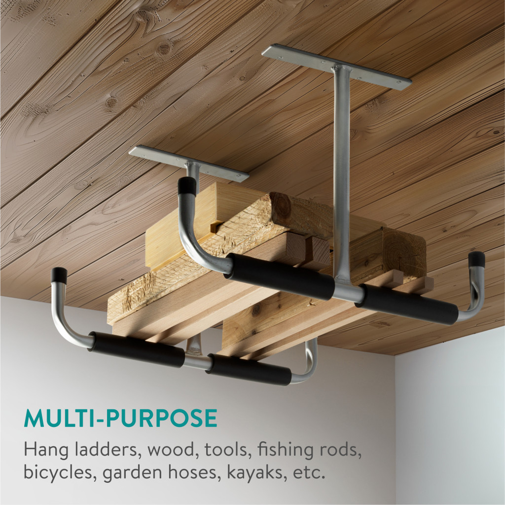 Set 2 carlige depozitare Navaris, 42x29.5 cm, tavan/perete, pentru sarcini mari, negru, otel
