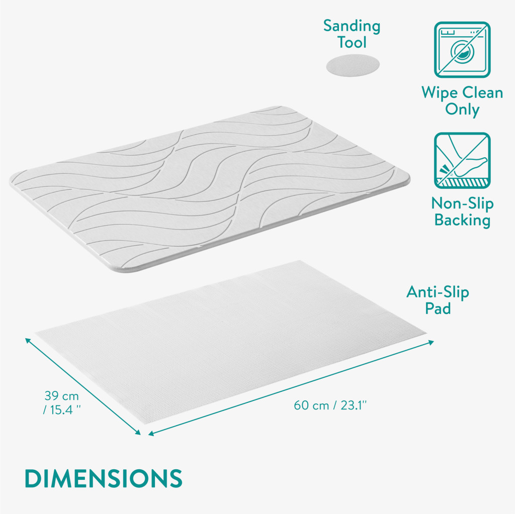 Covoras baie piatra diatomita Navaris, uscare rapida, 60x39 cm, antiderapant, ivoriu, negru, piatra