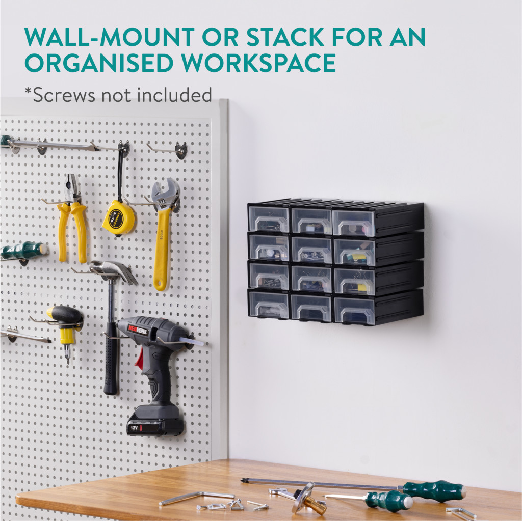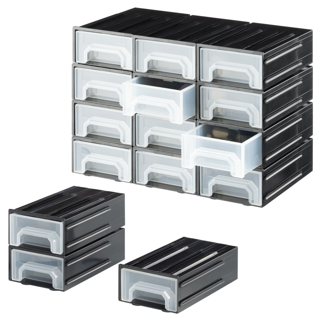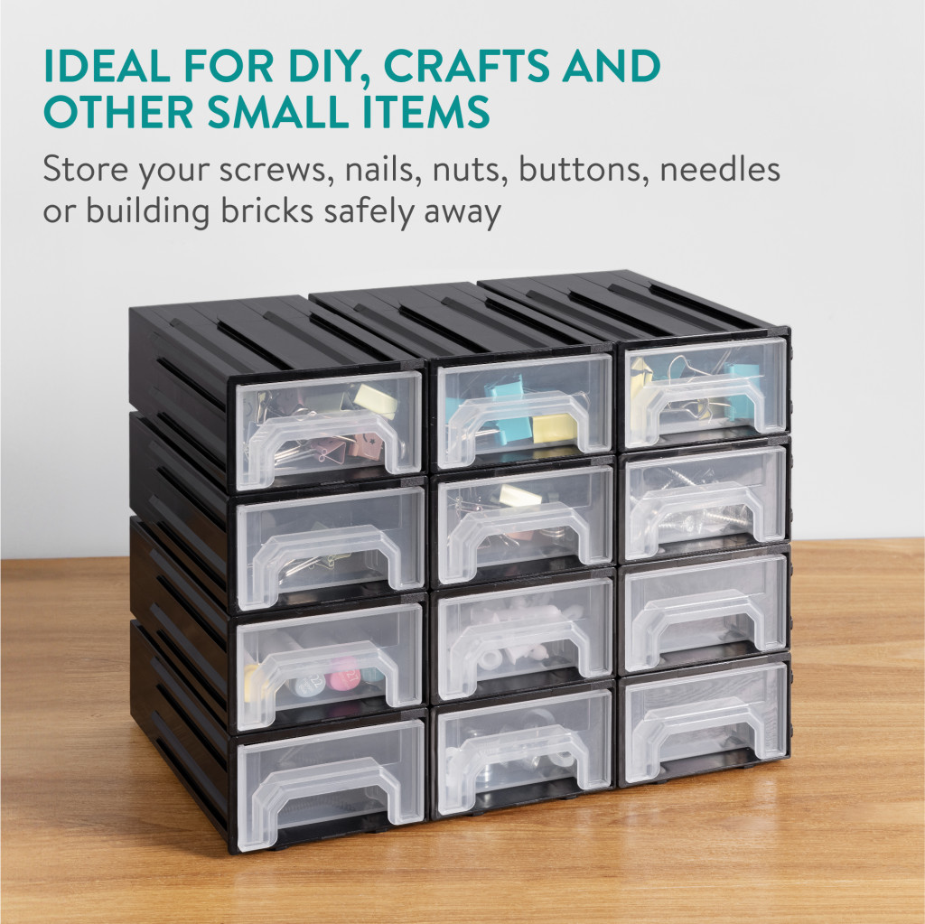 Cutie organizare Navaris cu 12 sertare interconectabile, 5.9x3.4x1.9 cm, montaj perete, gri, plastic
