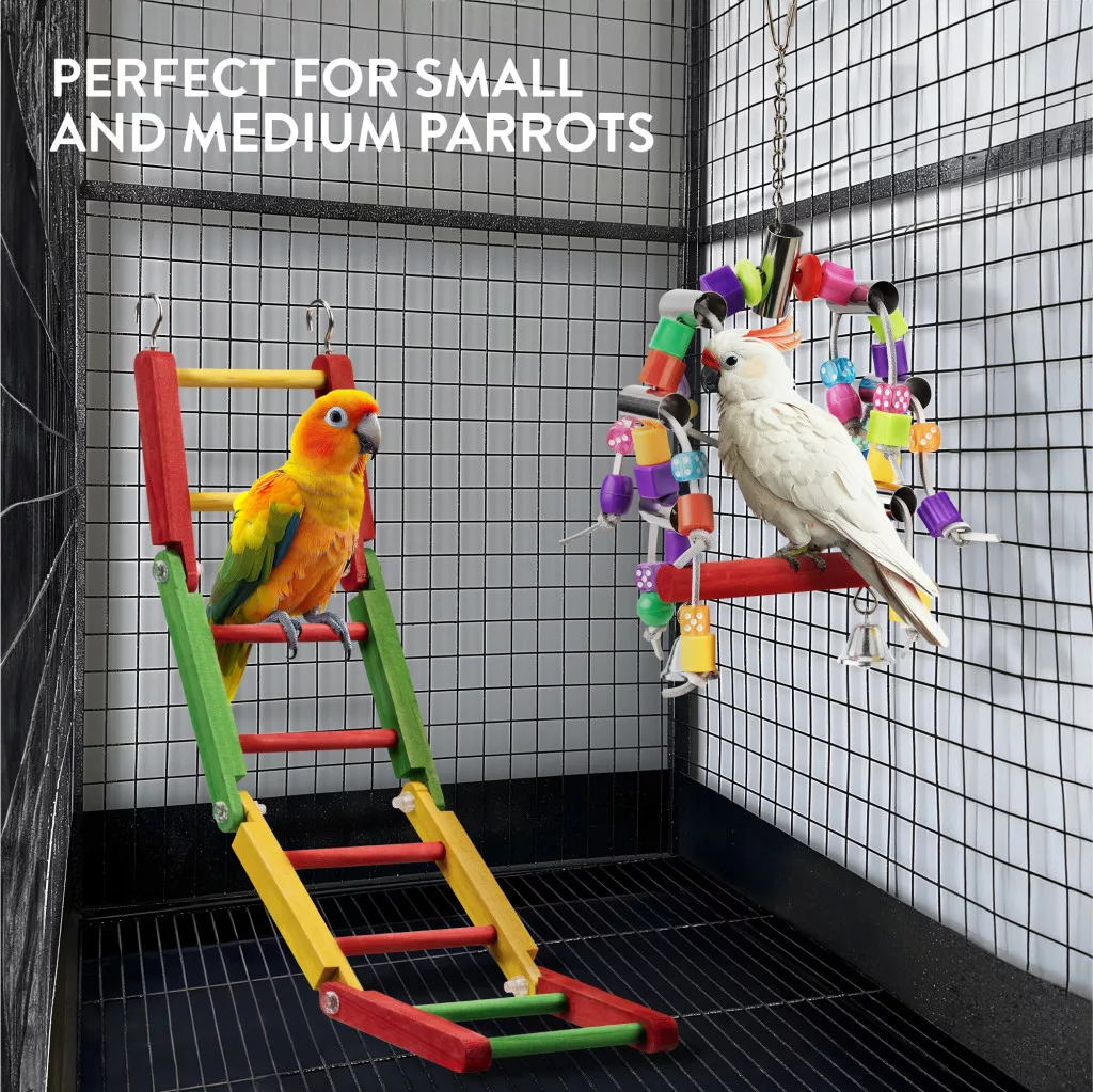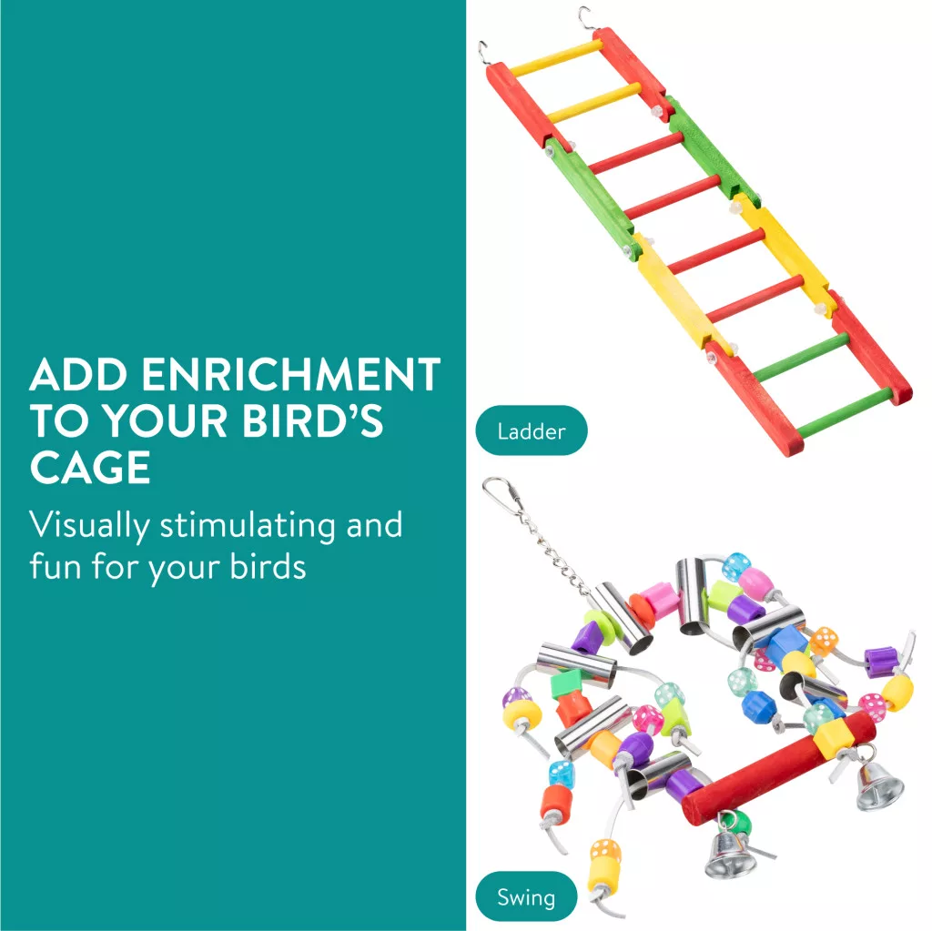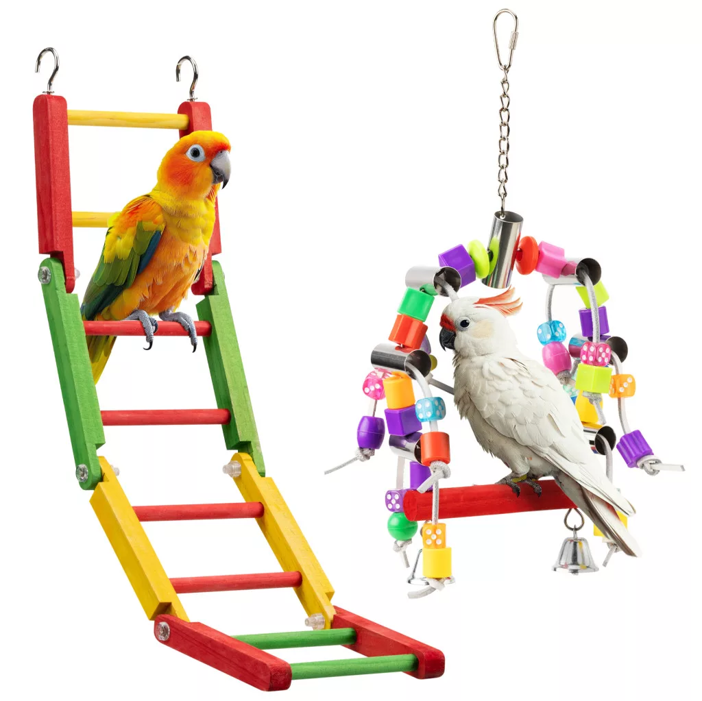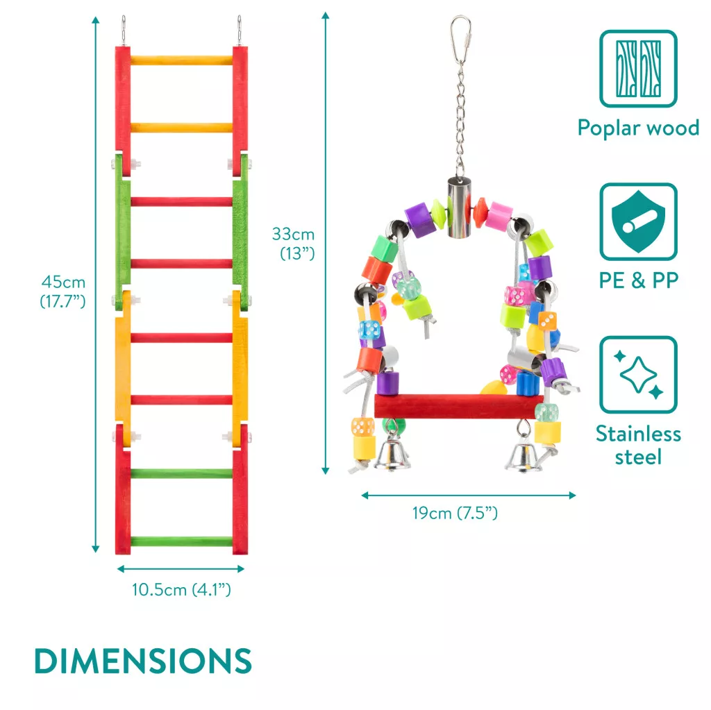 Set jucarii papagali Navaris, 2 piese, leagan si scara, lemn de plop, NAV0000273T001C