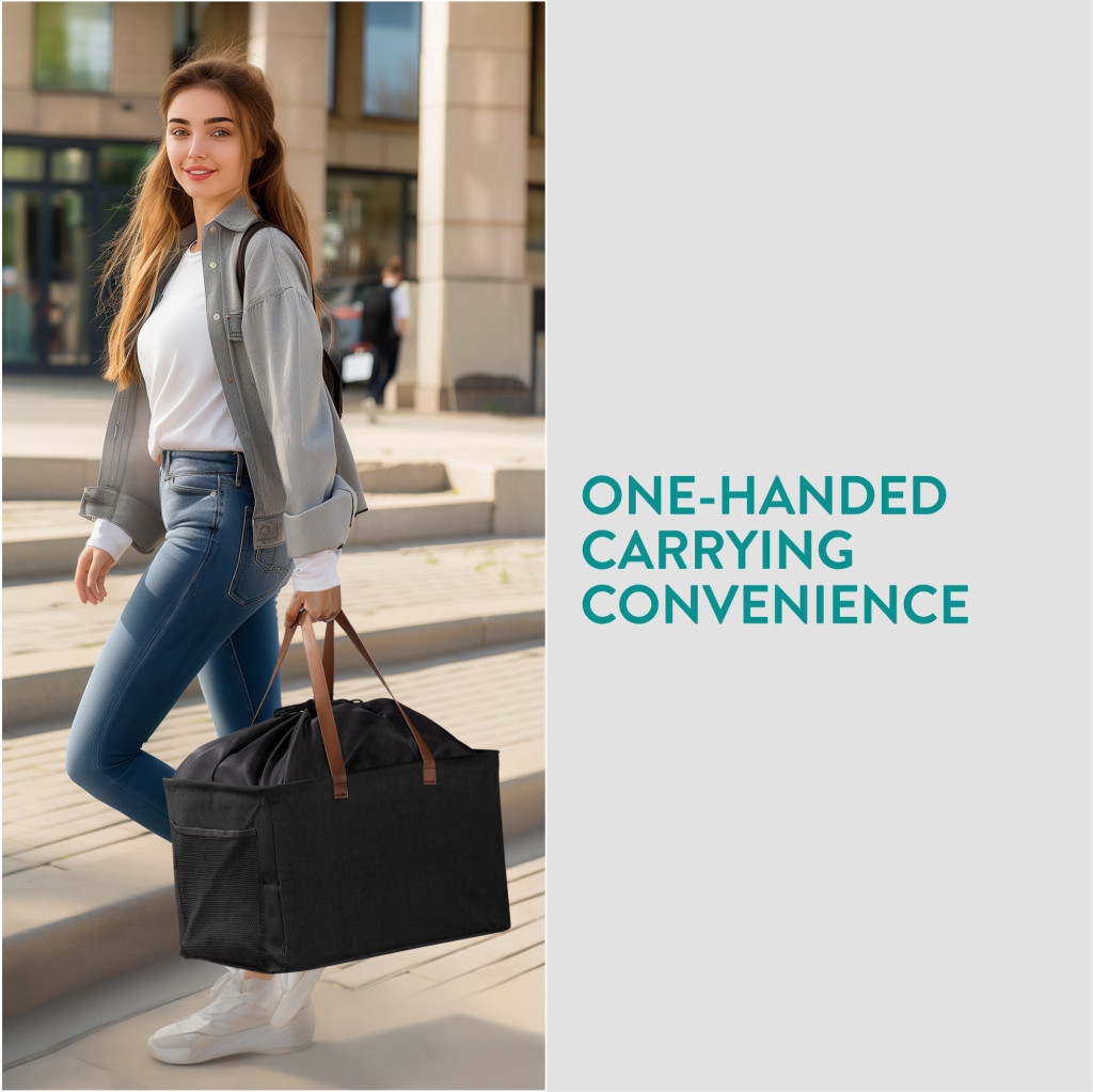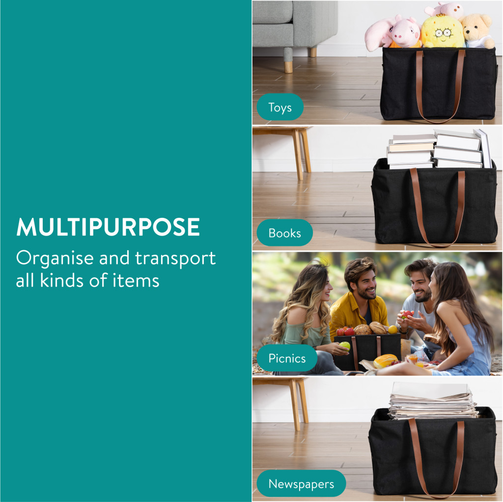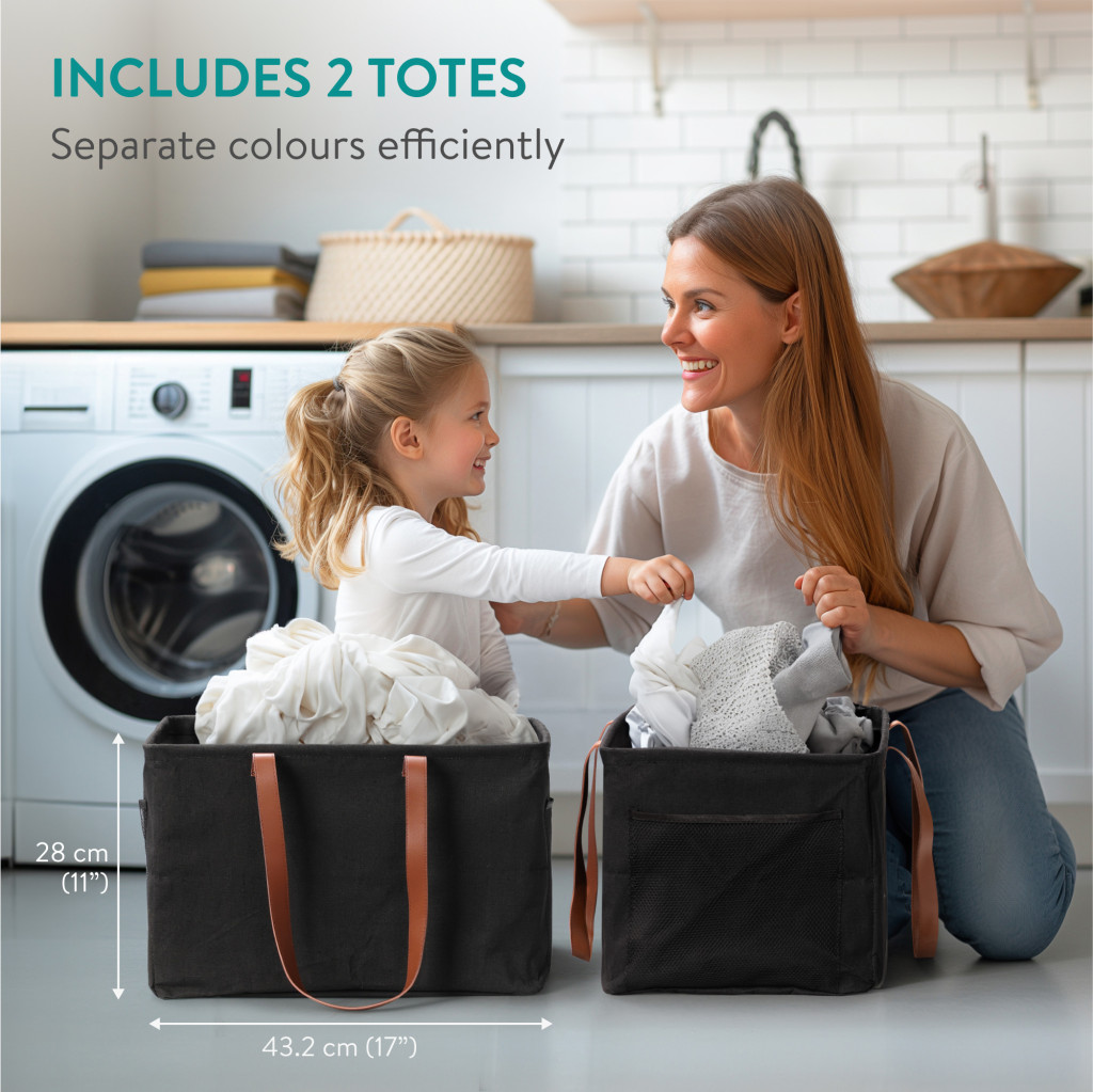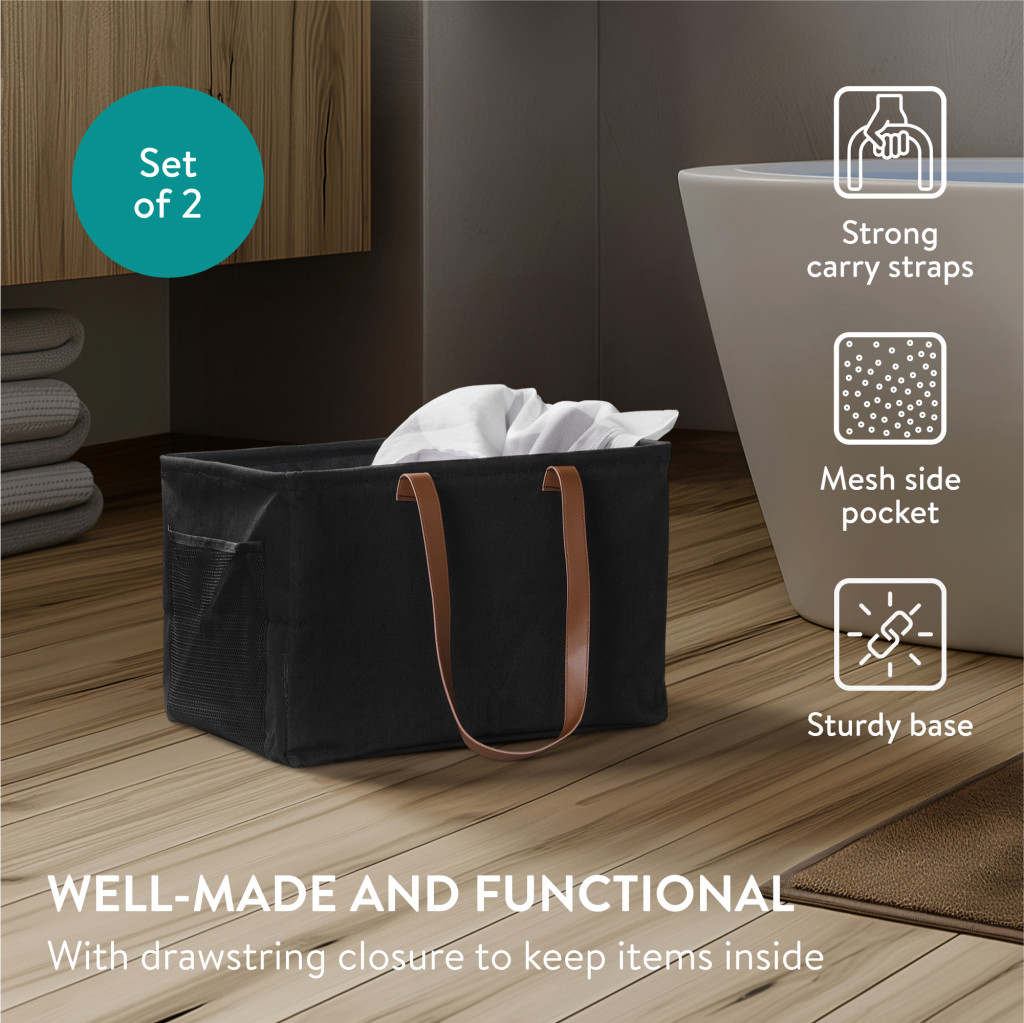 Set 2 cosuri rufe pliabile Navaris, 37 L, manere laterale si snur, 43x31x28 cm, negru, textil