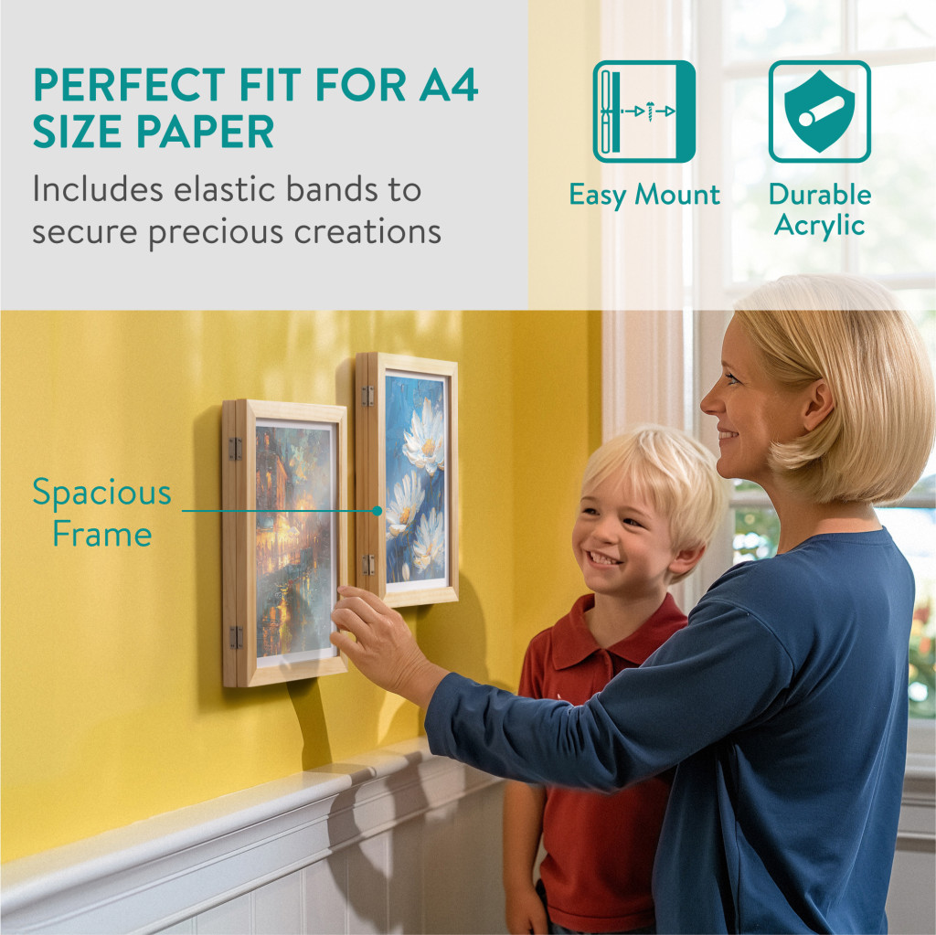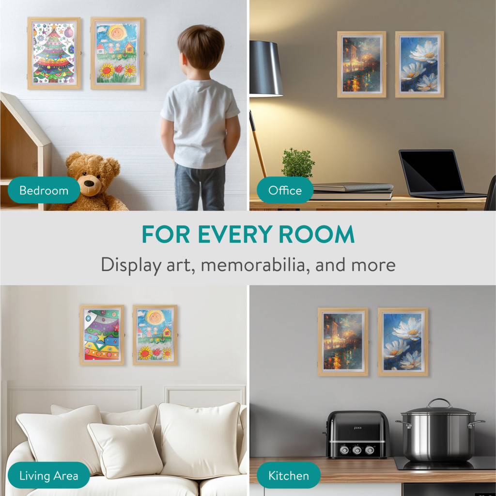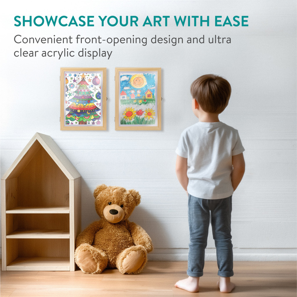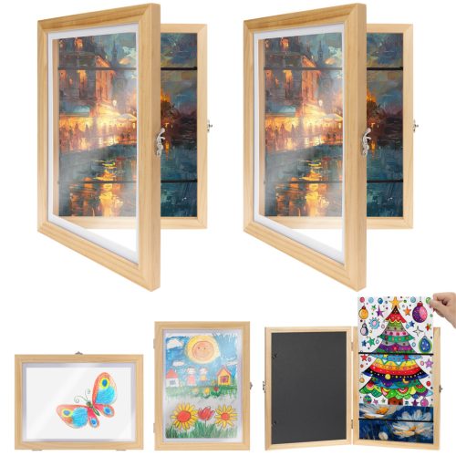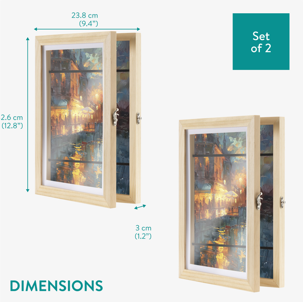 Set 2 rame foto Navaris, deschidere frontala, format A4, schimbare rapida, lemn de pin, maro, lemn