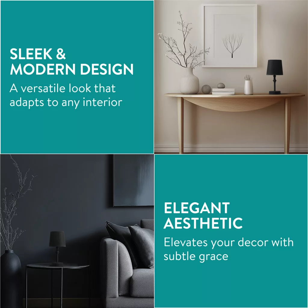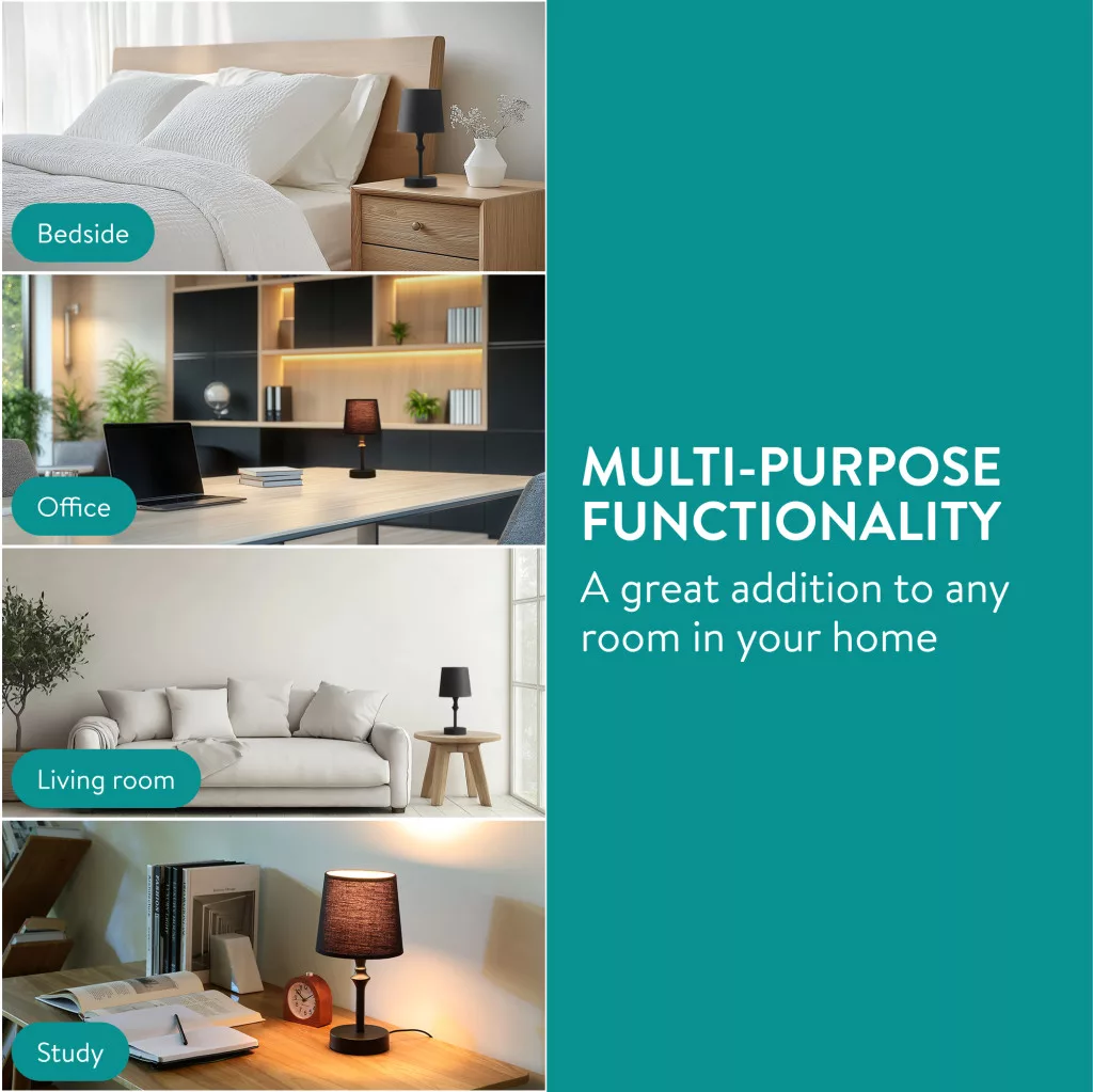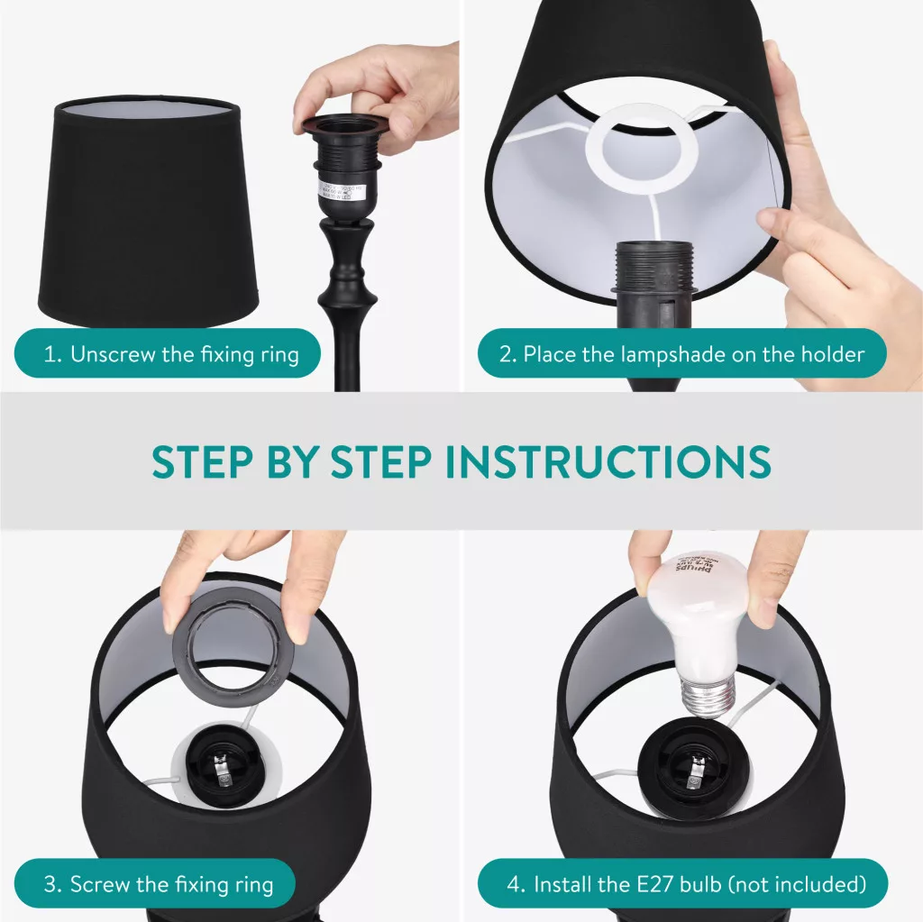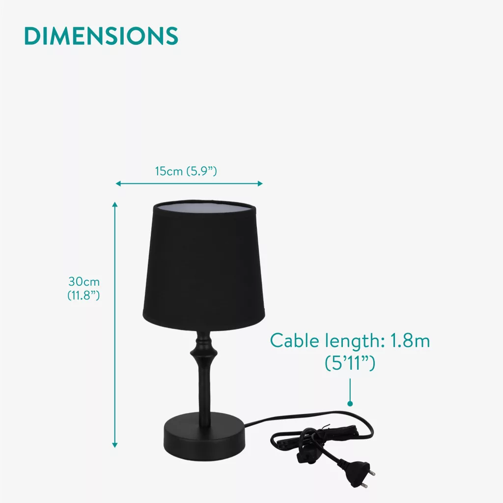 Lampa de masa Navaris, E27, abajur textil, 30 cm, cablu 1.8 m, baza metalica, negru, textil