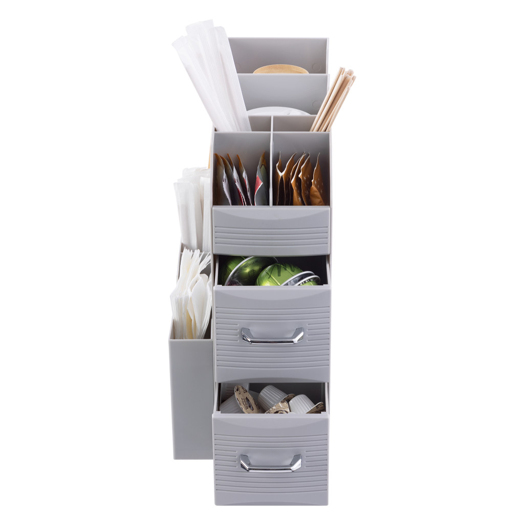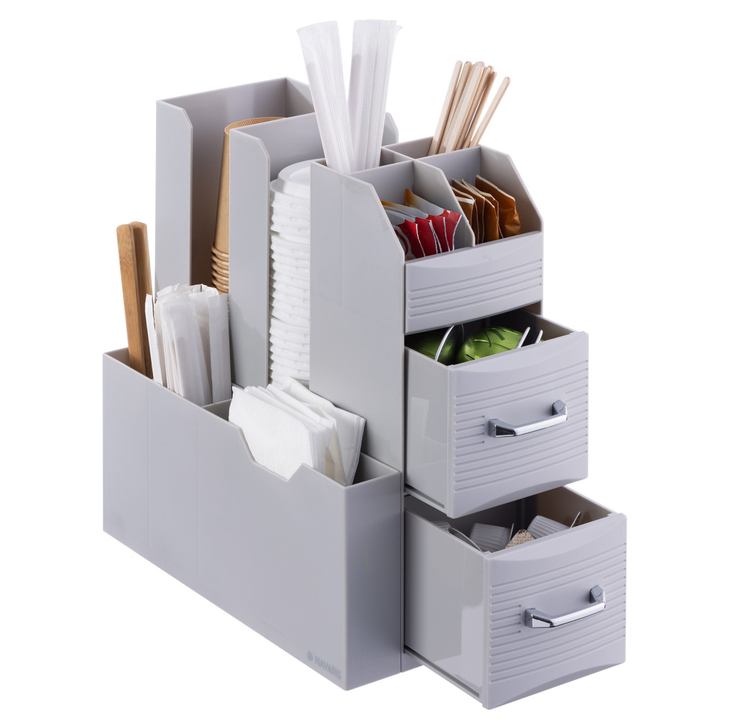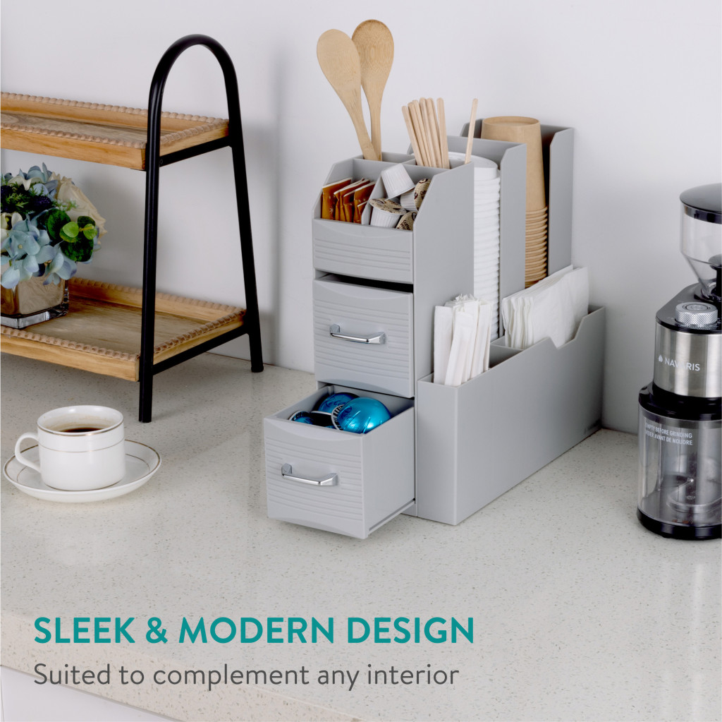 Organizator accesorii cafea Navaris, cu sertare, 31.5x13.7x28.7 cm, HIPS, gri, plastic
