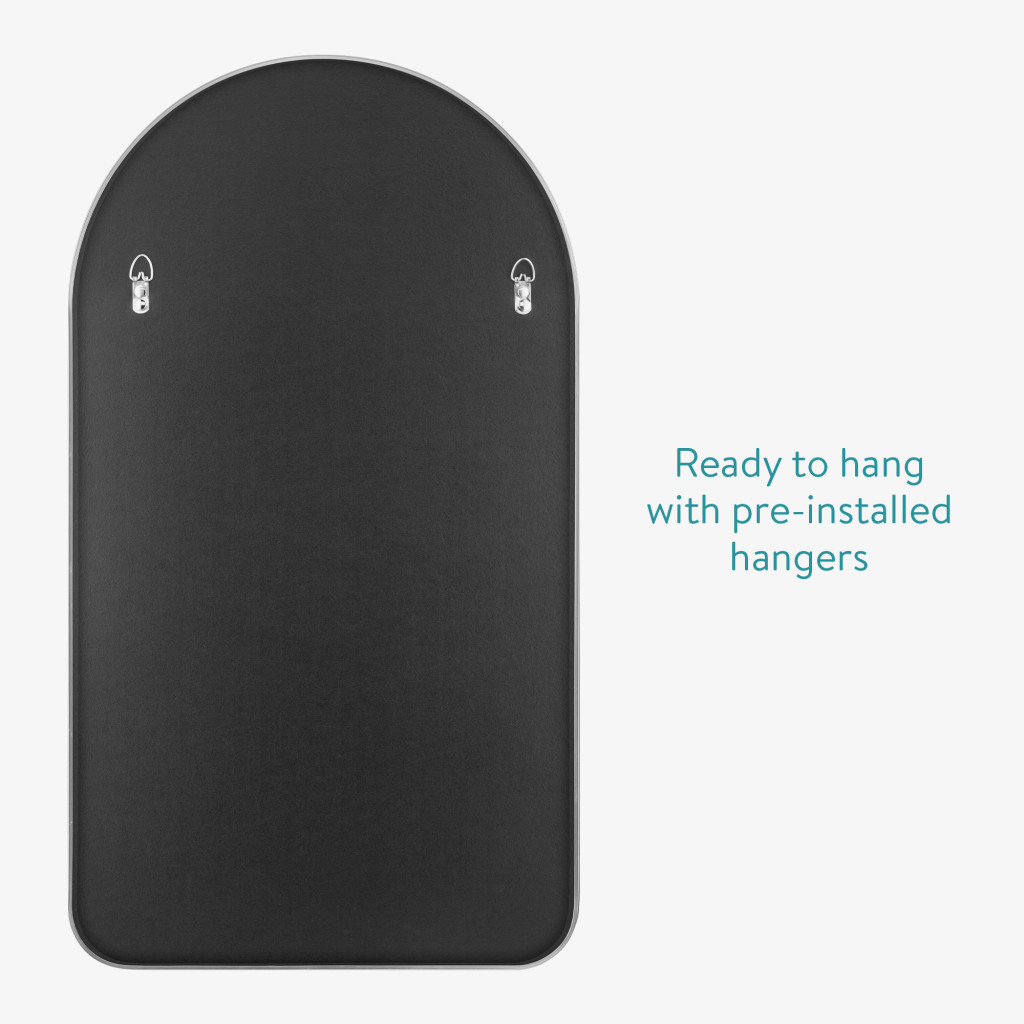 Oglinda de perete Navaris, arcuita, 45x80 cm, montaj usor, argintiu, aluminiu/sticla