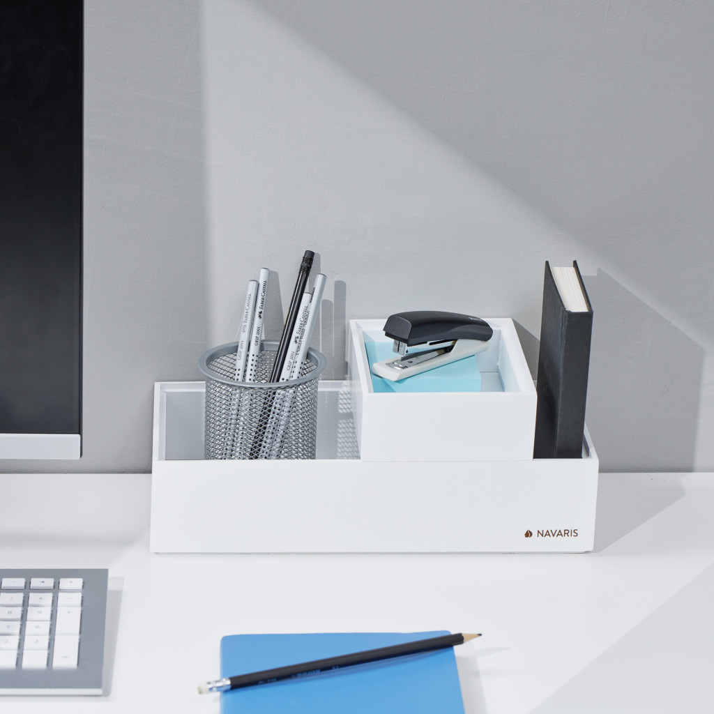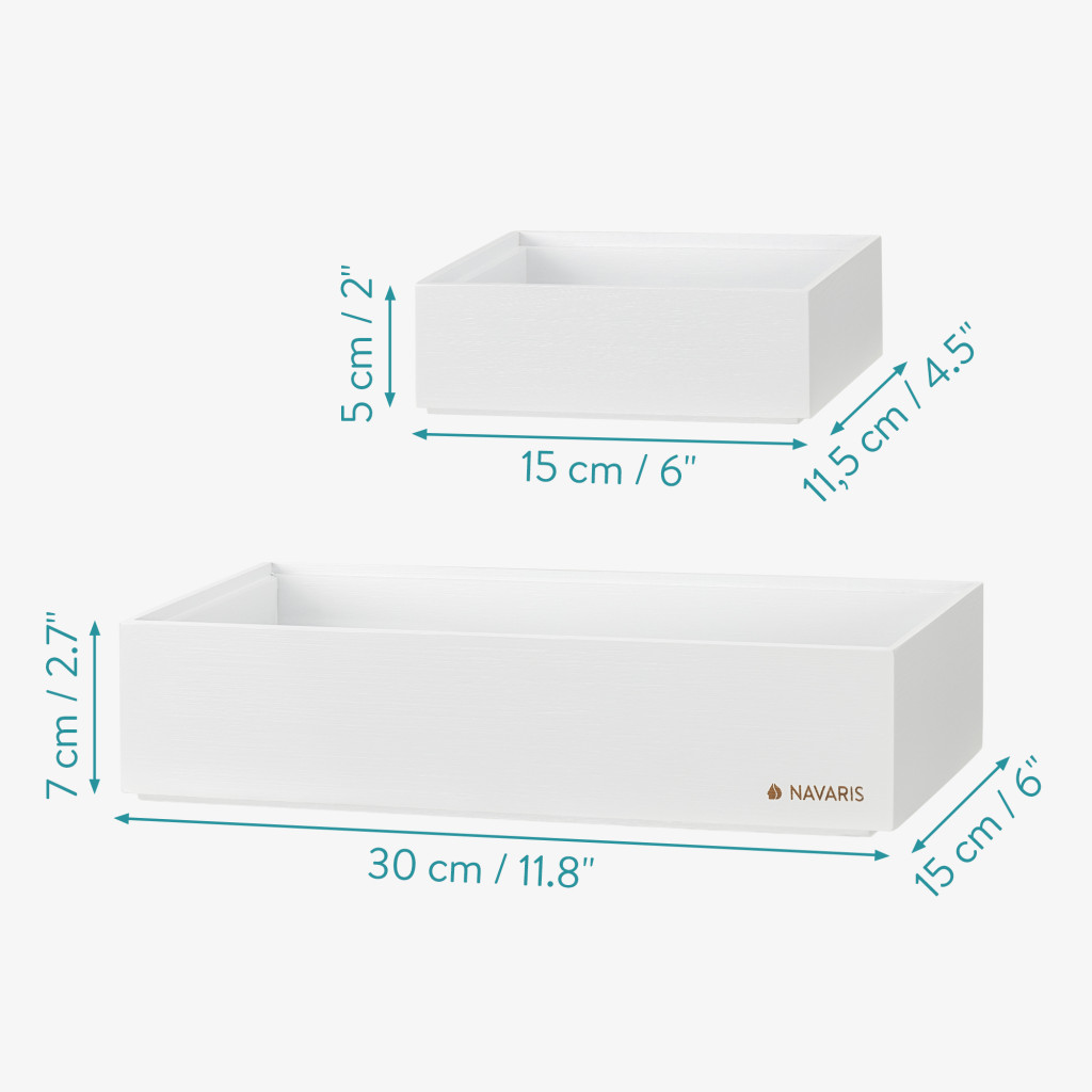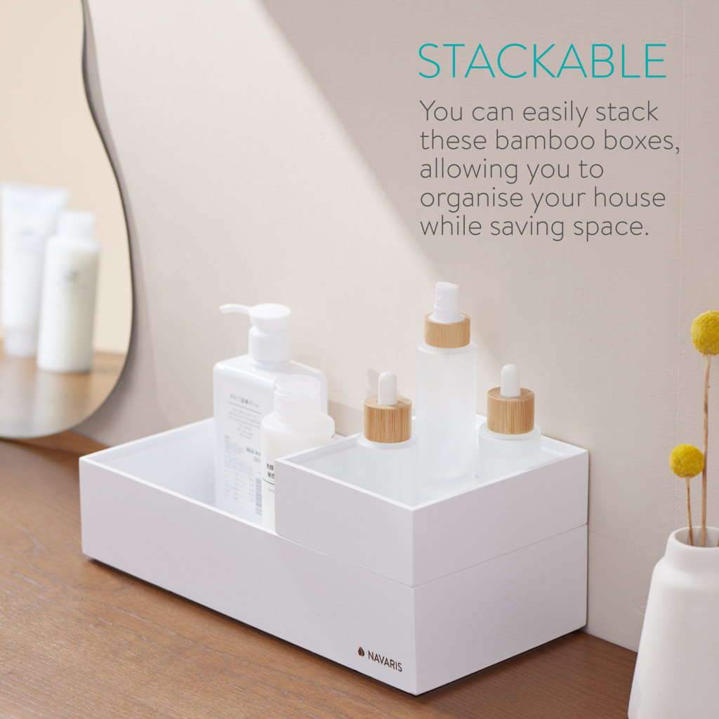 Set 2 cutii depozitare Navaris, 30x15x7 cm si 15x11, 5x5 cm, alb, bambus