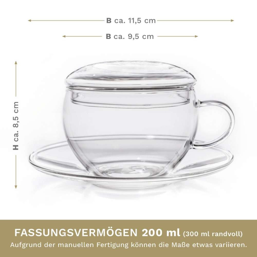 Set 2 cani din sticla Creano, 200 ml, cu farfurioara si capac, pentru ceai si cappuccino