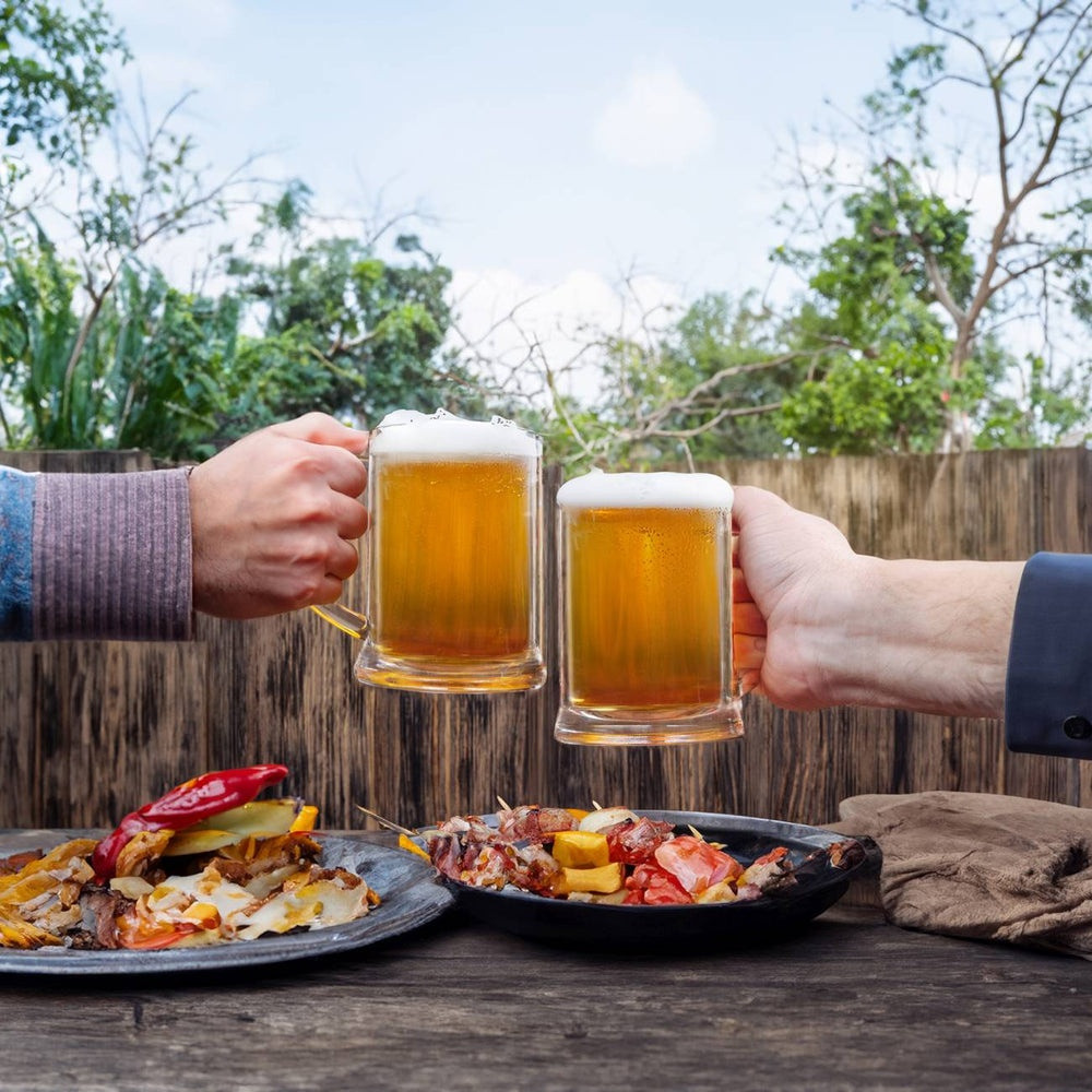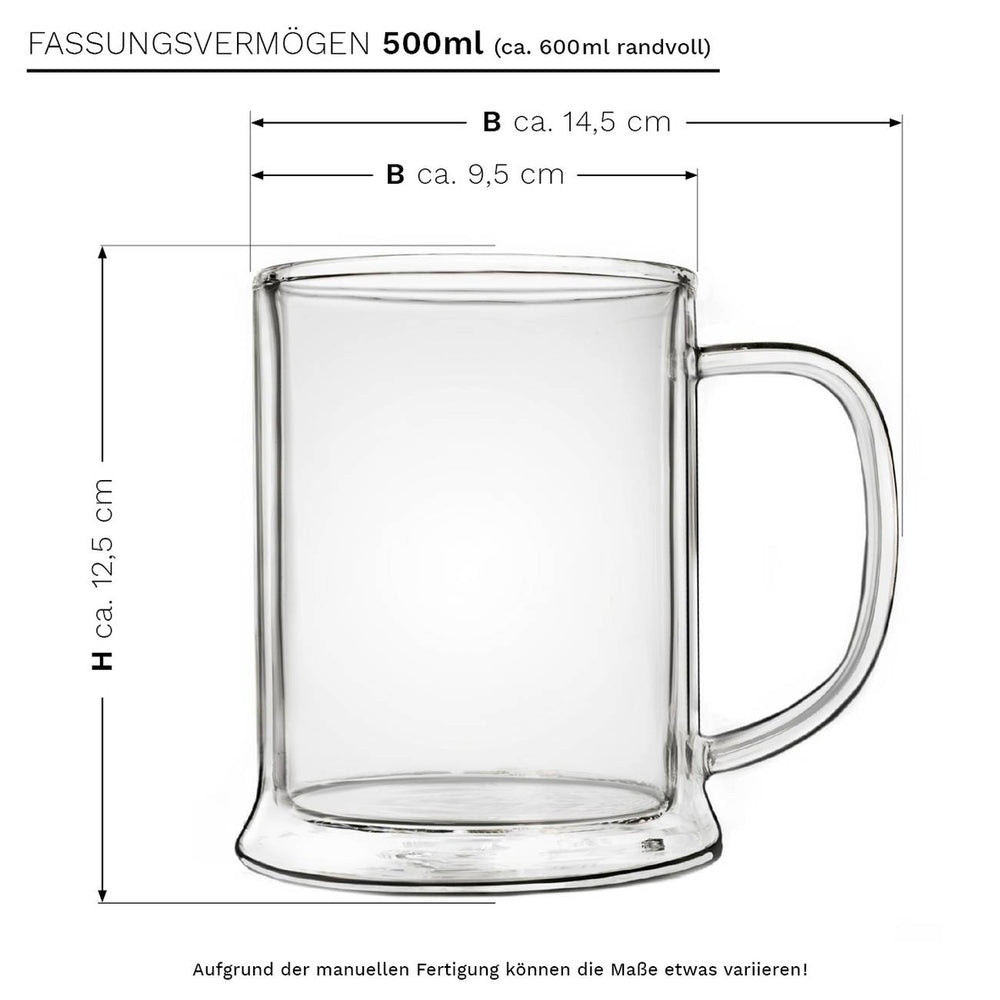 Halba termica Creano pentru bere, 500 ml, sticla borosilicata, perete dublu, cu maner
