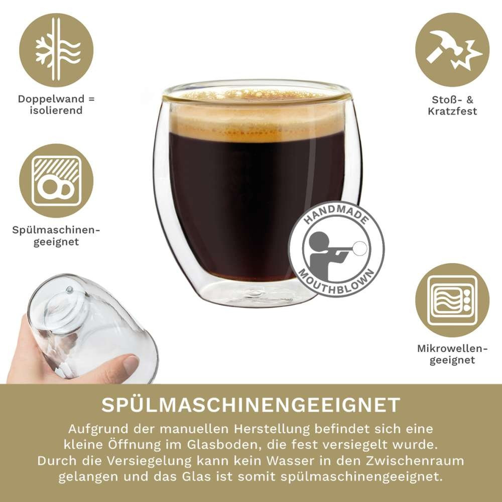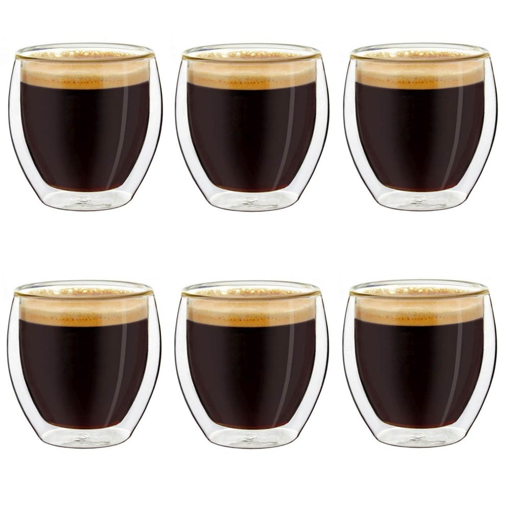 Set 6 pahare espresso termice Creano, 100 ml, sticla borosilicata, perete dublu