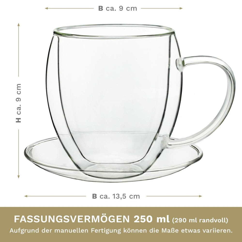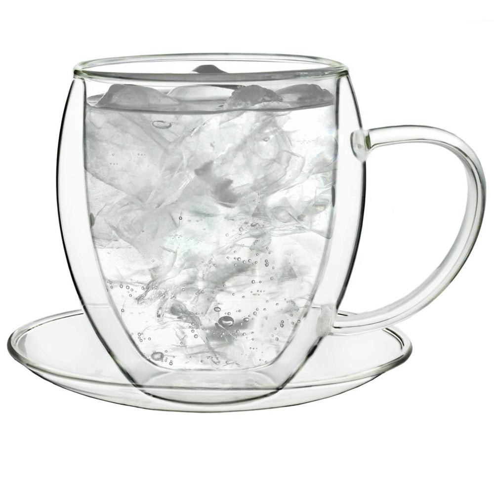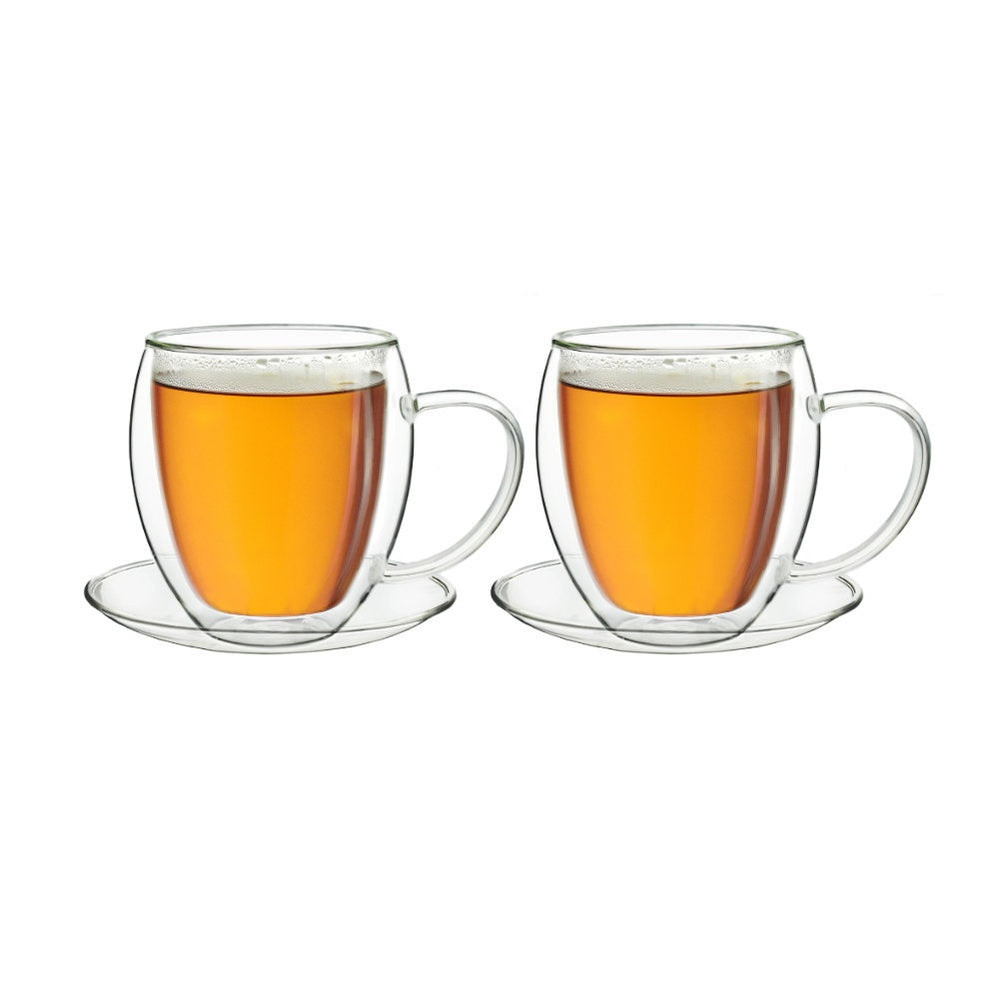 Set 2 cani termice Creano, 250 ml, sticla borosilicata, perete dublu, cu farfurioara