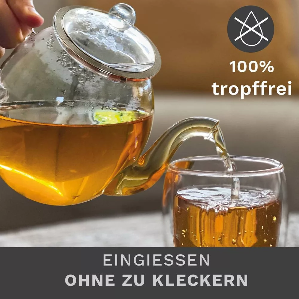 Ceainic din sticla Creano, 1 L, 3 piese, cu infuzor din inox, capac, anti-picurare