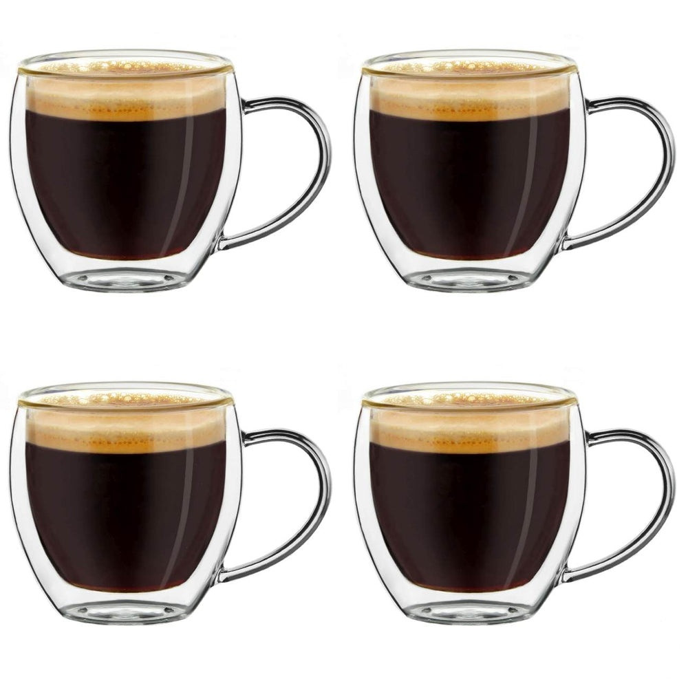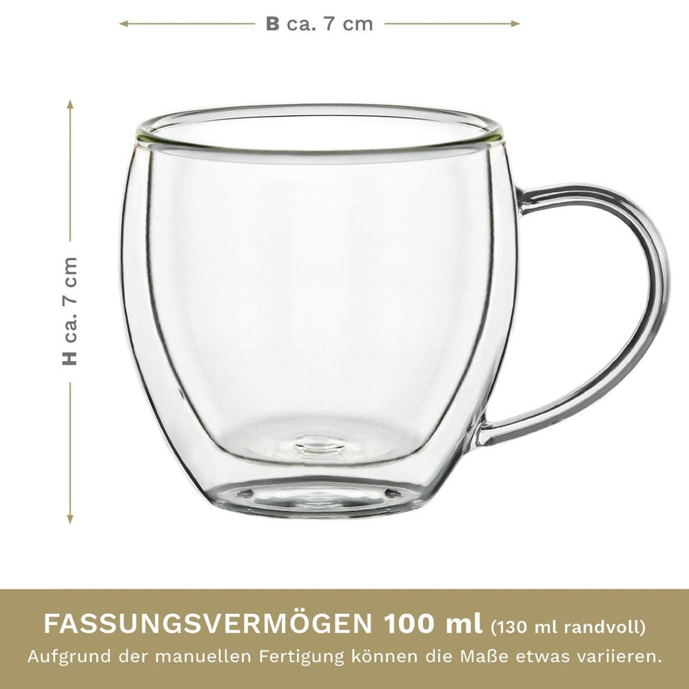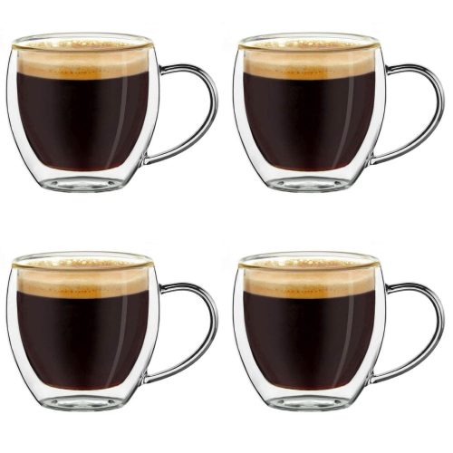 Set 4 cesti espresso termice Creano, 100 ml, sticla borosilicata, perete dublu, model inalt