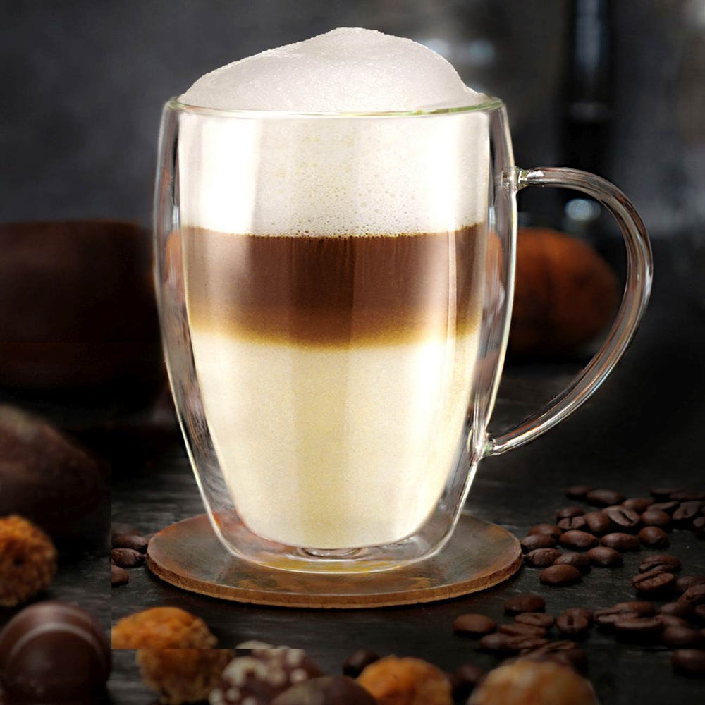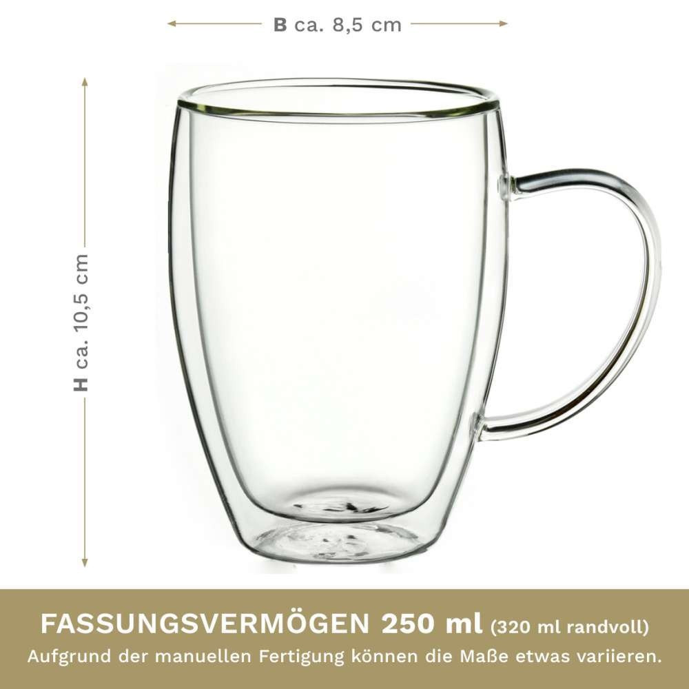 Set 2 cani termice Creano cu maner, 250 ml, sticla borosilicata, perete dublu