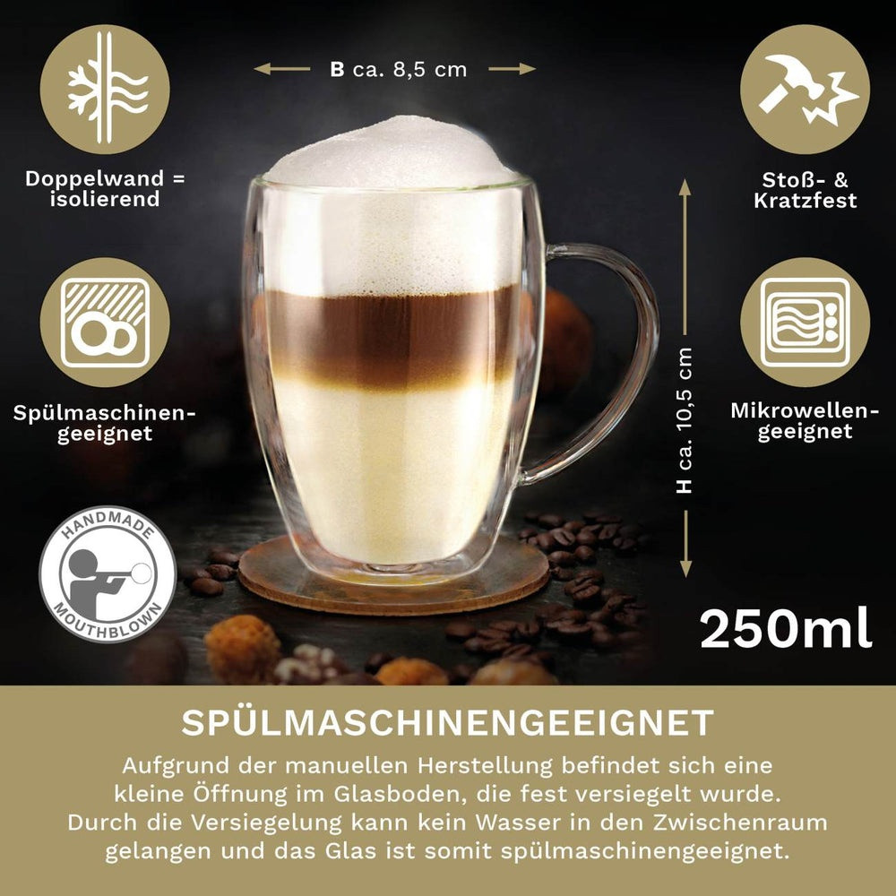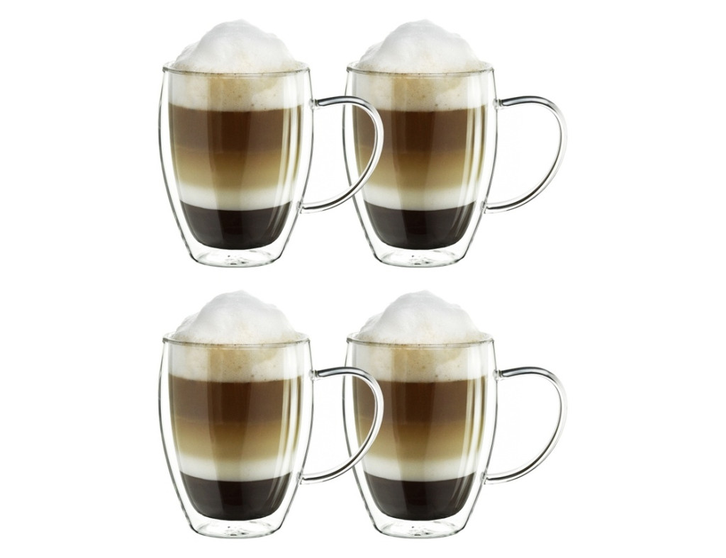 Set 4 cani termice Creano cu maner, 250 ml, sticla borosilicata, perete dublu