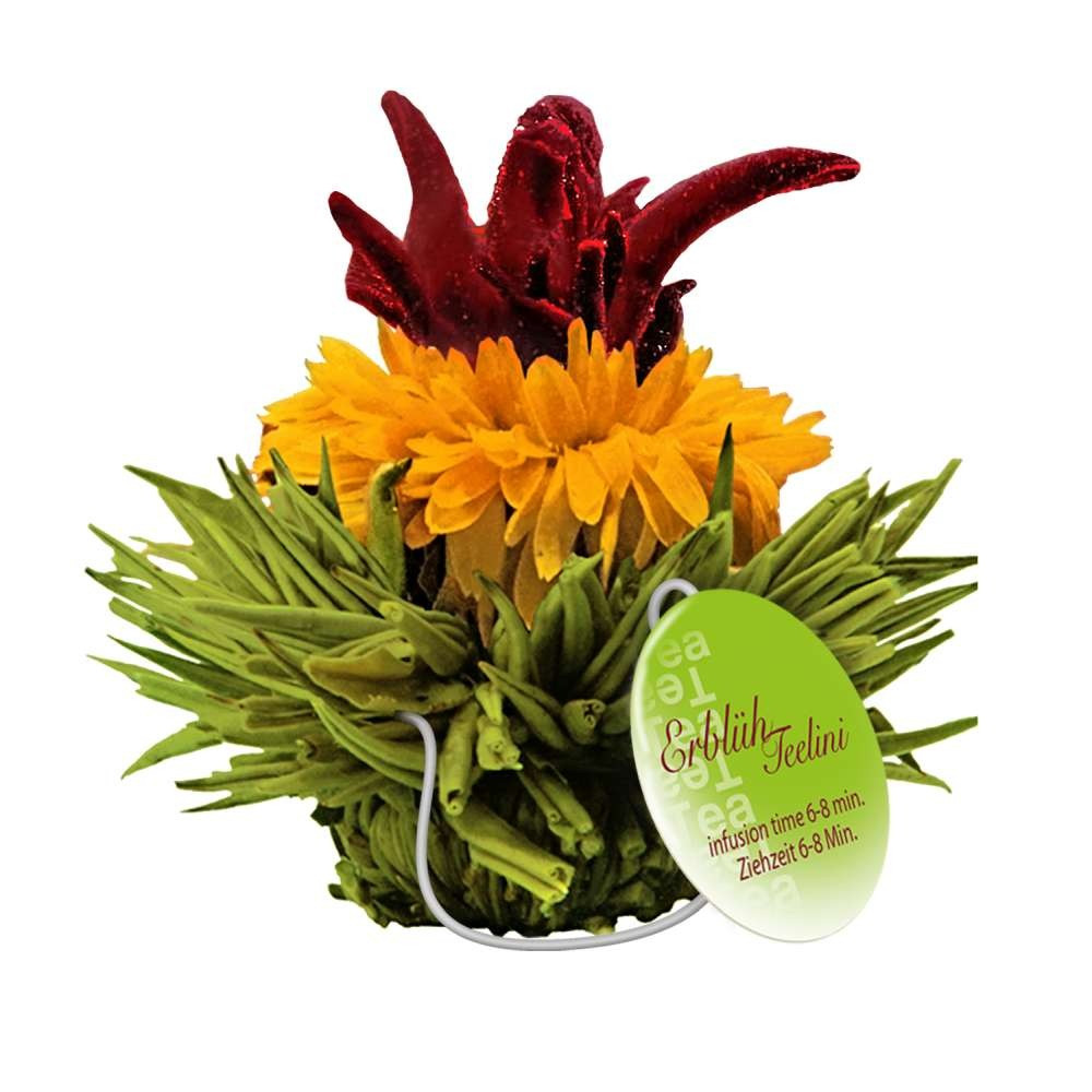 Превърни всяка чаша в малко зрелище: комплектът цъфтящ чай Creano ErbluhTeelini включва 8 топчета зелен чай, дозирани за една чаша, които се разтварят красиво в горещата вода. Плодовите аромати (ягода, череша, манго или лимон) се съчетават приятно с цветни нотки – за елегантна чай‑пауза у дома или в офиса.