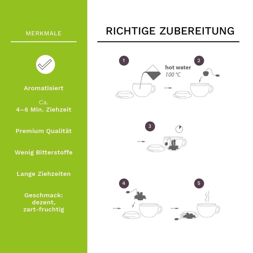 Всяко топче има вграден памучен конец, така че го изваждаш лесно след желаното време за запарване – като пакетче чай. Подаръчната кутия е подходяща и за поднасяне, а за оптимален резултат препоръчваме да следваш указанията на опаковката относно запарването и съставките.