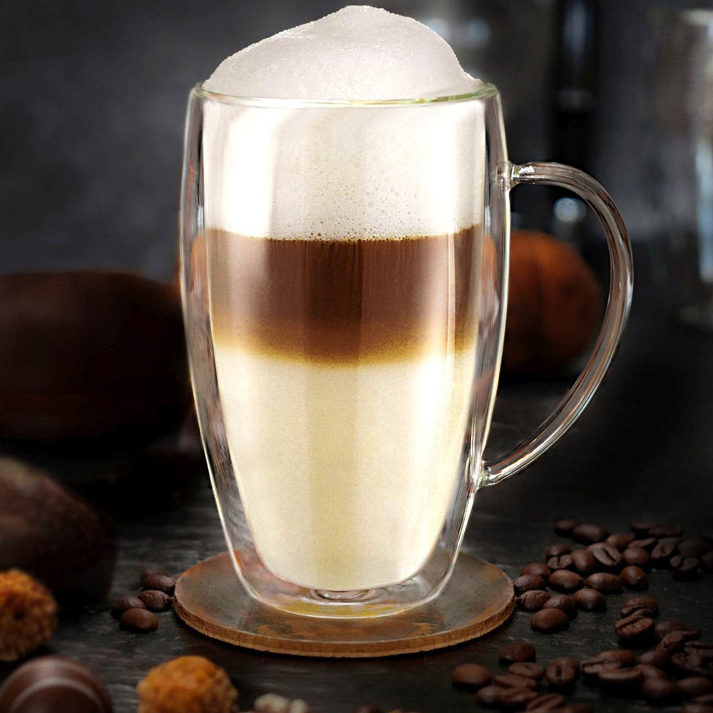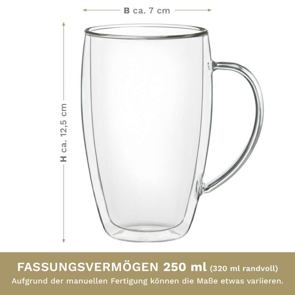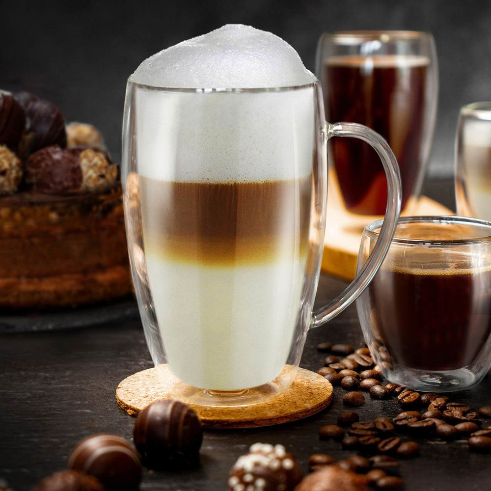 Set 4 cani termice Creano DG-SHH, 250 ml, sticla borosilicata, perete dublu, cu maner