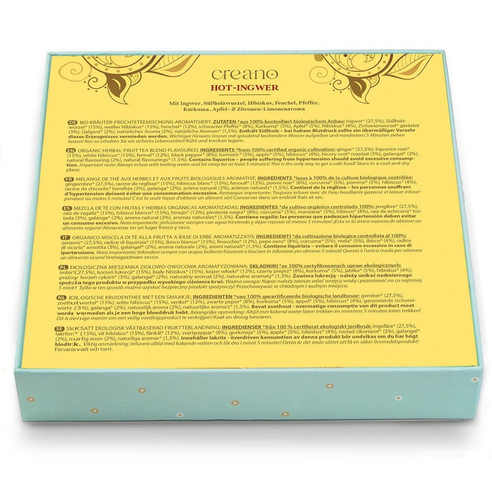 Подаръчният комплект Creano Tea Lovers предлага 9 пирамидални пакетчета в симпатични форми, създадени за удобно запарване и впечатляваща презентация. Подходящ е за чай‑паузи без кофеин с разнообразни аромати – лесен за подаряване или като малък детайл на масата.